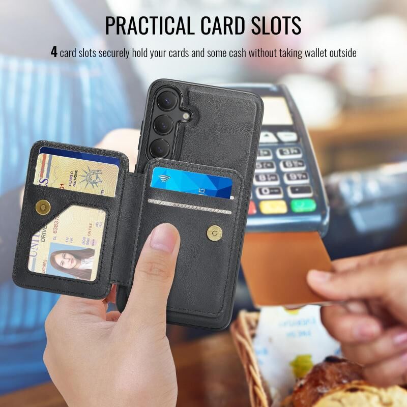 5. Multi-Card Wallet Function: Card slots wallet pocket and cash compartment can store your credit cards, cash or small bills needed daily.