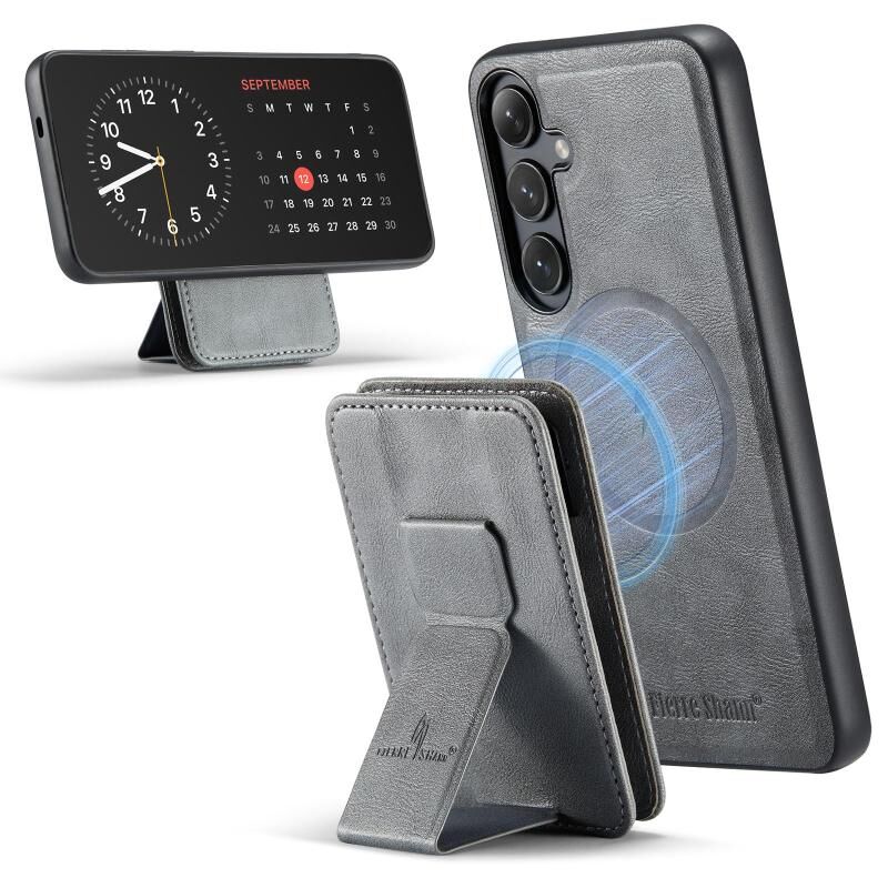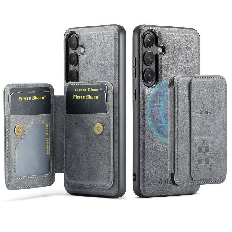 For Samsung Galaxy S24 FE 5G Fierre Shann FS028 MagSafe RFID Card Holder Back Phone Case(Grey) (FIERRE SHANN)