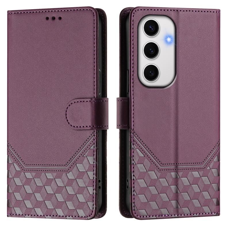 Για Samsung Galaxy S24 FE 5G Honeycomb ανάγλυφη RFID δερμάτινη θήκη τηλεφώνου (Violet)