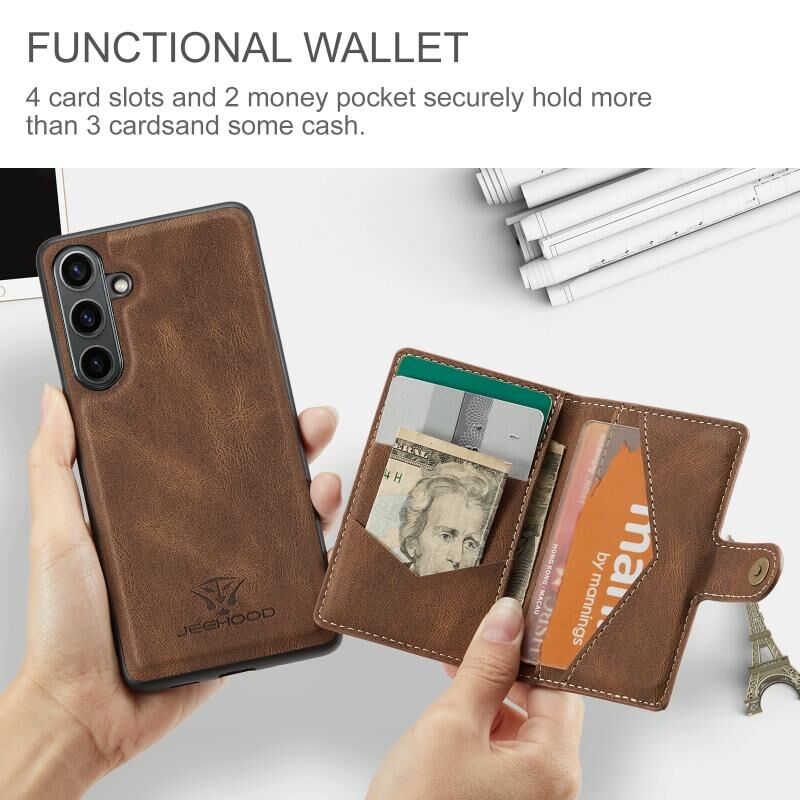 Για Samsung Galaxy S24 FE 5G JEEHOOD J01 Ρετρό μαγνητική αποσπώμενη θήκη τηλεφώνου πορτοφόλι (καφέ) (JEEHOOD)