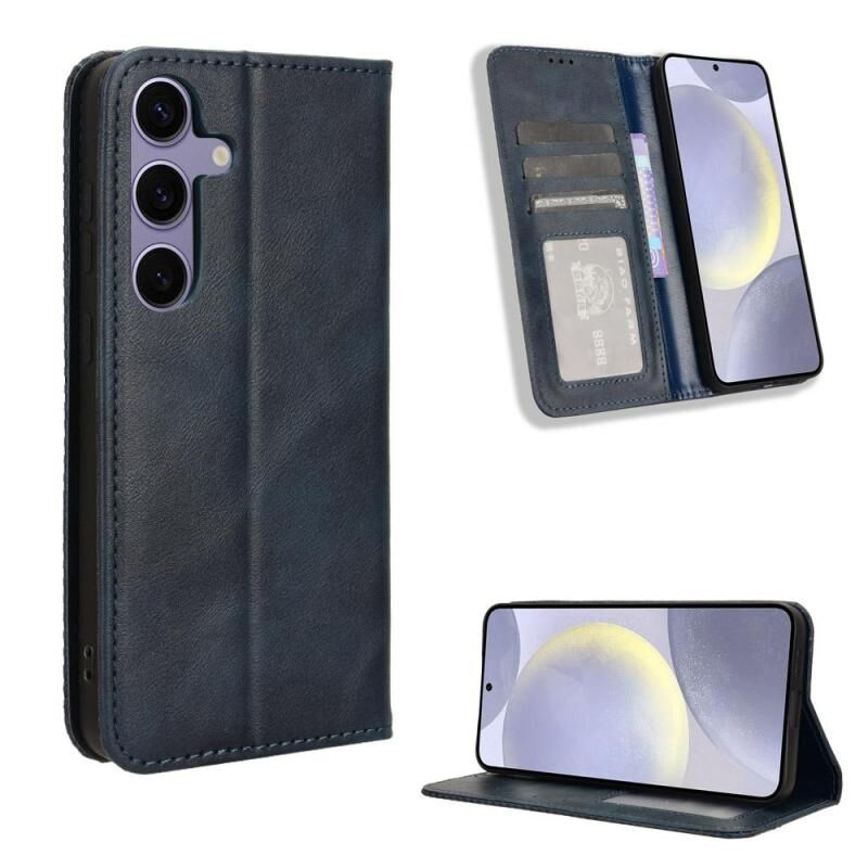 Για Samsung Galaxy S24 FE 5G Μαγνητική πόρπη ρετρό υφή δερμάτινη θήκη τηλεφώνου (μπλε)