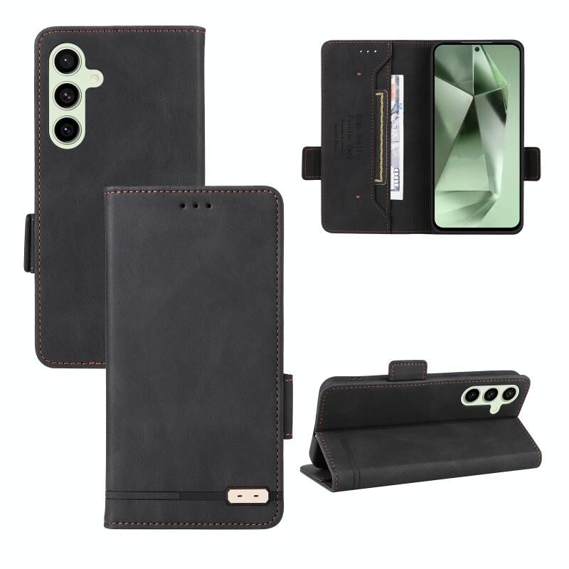 Για Samsung Galaxy S24 FE 5G Μαγνητικό κούμπωμα Δερμάτινη θήκη τηλεφώνου(Μαύρο)