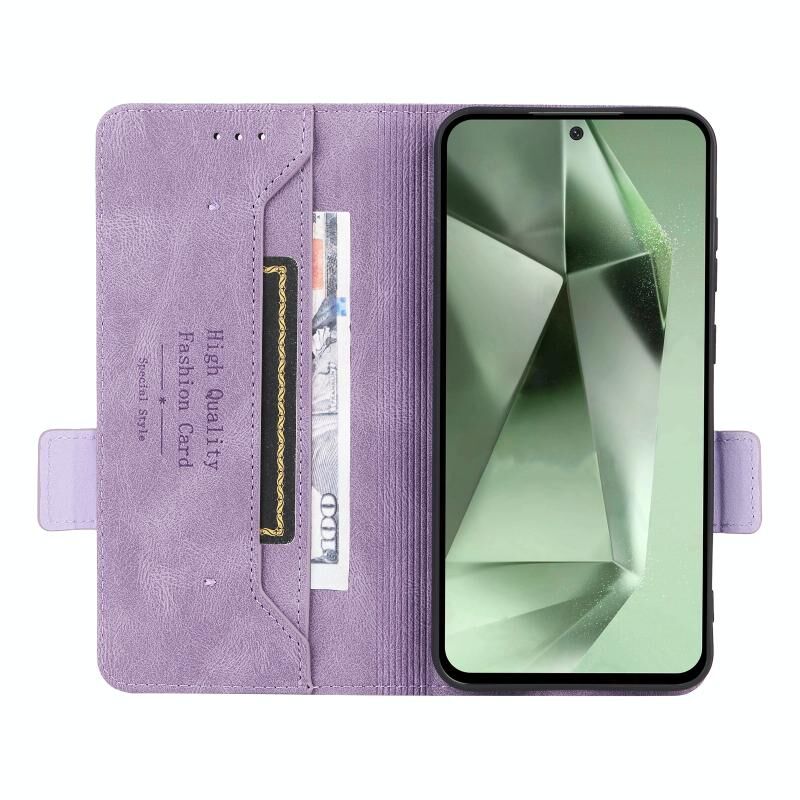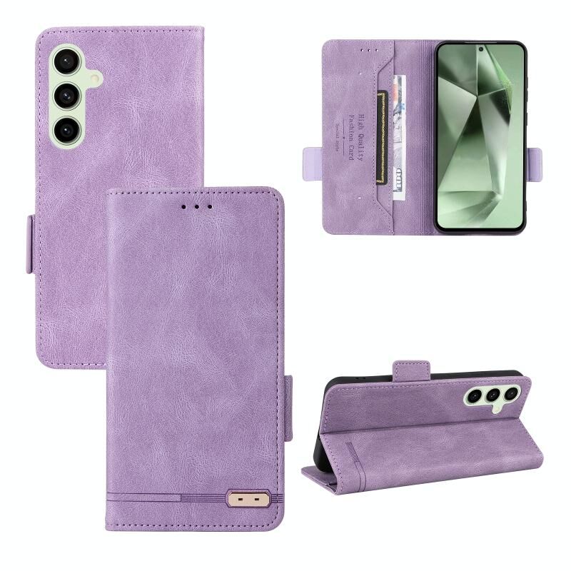 Για Samsung Galaxy S24 FE 5G Μαγνητικό κούμπωμα Δερμάτινη θήκη τηλεφώνου (μωβ)