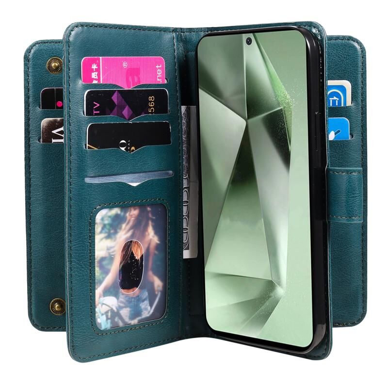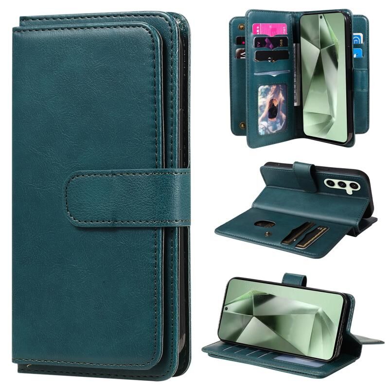 Για Samsung Galaxy S24 FE 5G Πολυλειτουργικό πορτοφόλι 10 υποδοχές για κάρτες Δερμάτινη θήκη τηλεφώνου (σκούρο πράσινο)