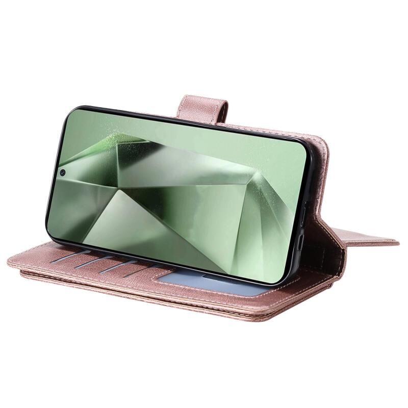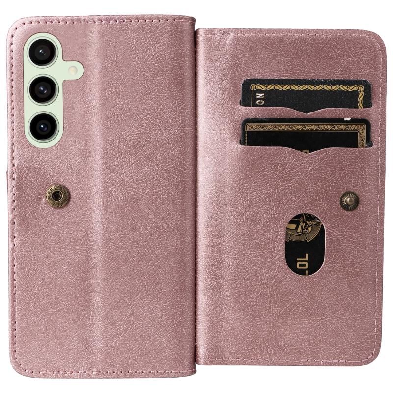 Για Samsung Galaxy S24 FE 5G Πολυλειτουργικό πορτοφόλι 10 υποδοχές για κάρτες Δερμάτινη θήκη τηλεφώνου (ροζ χρυσό)