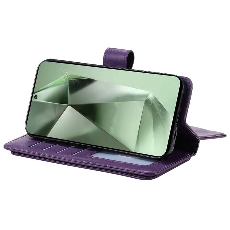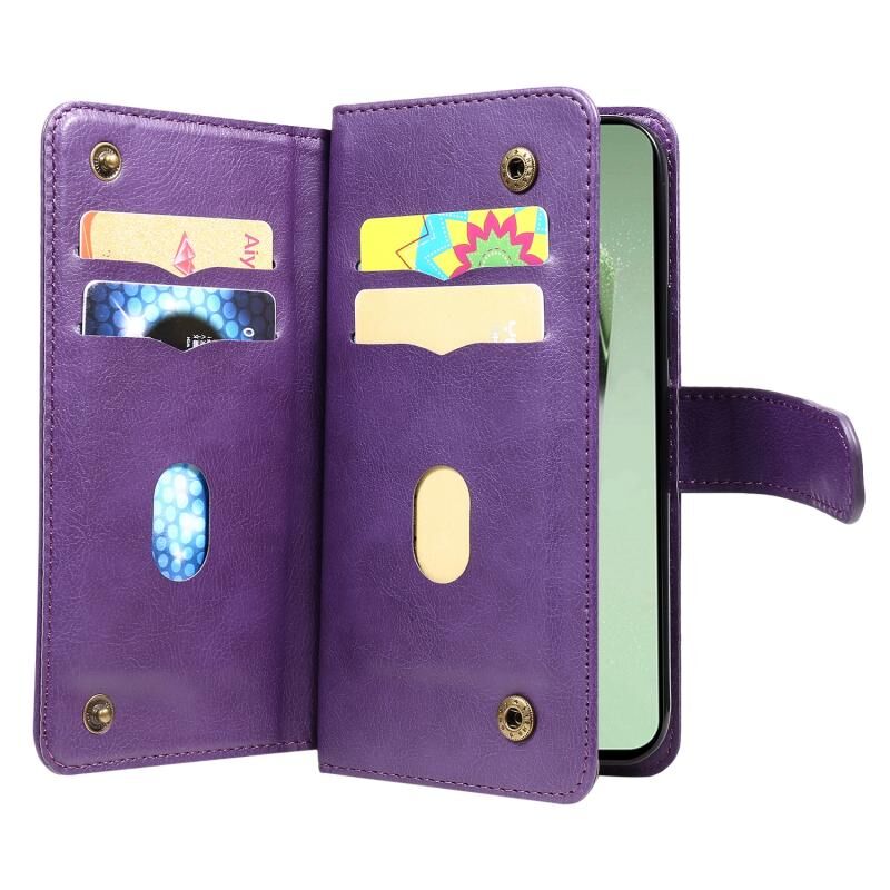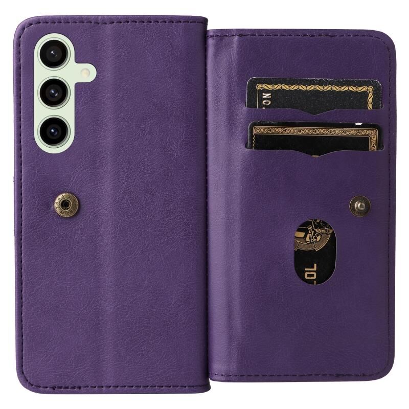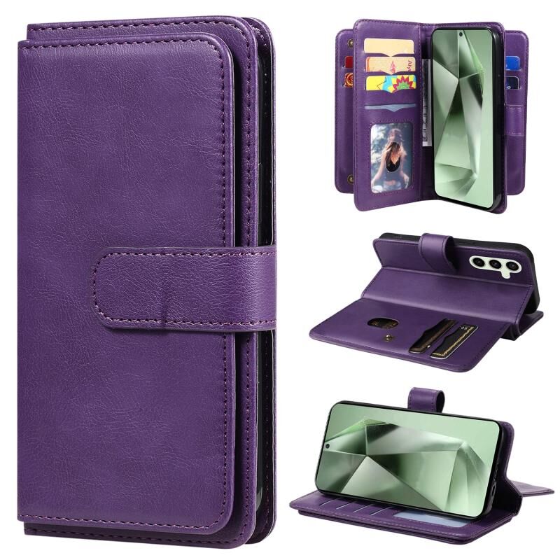 Για Samsung Galaxy S24 FE 5G Πολυλειτουργικό πορτοφόλι 10 υποδοχές για κάρτες Δερμάτινη θήκη τηλεφώνου (Violet)