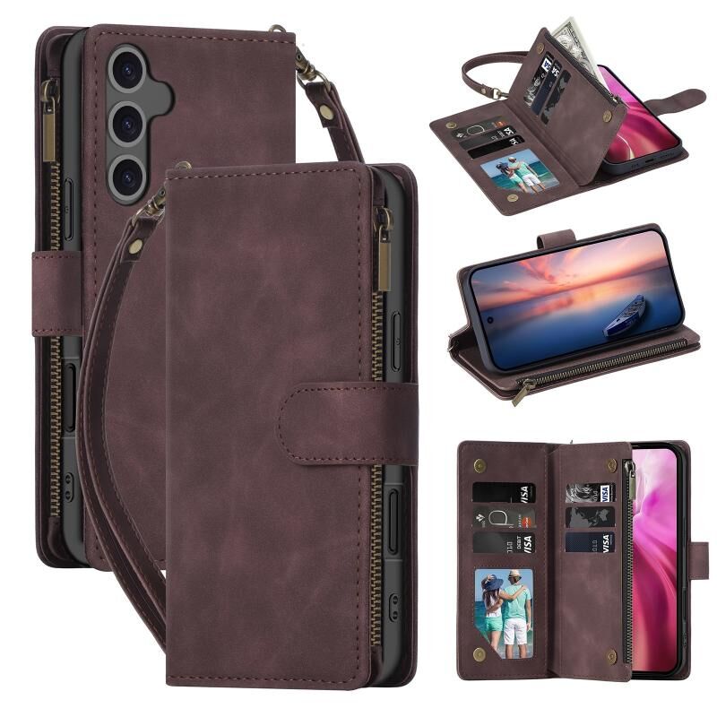 Για Samsung Galaxy S24 FE 5G Πολυλειτουργικό Crossbody φερμουάρ πορτοφόλι δερμάτινη θήκη τηλεφώνου (καφέ)