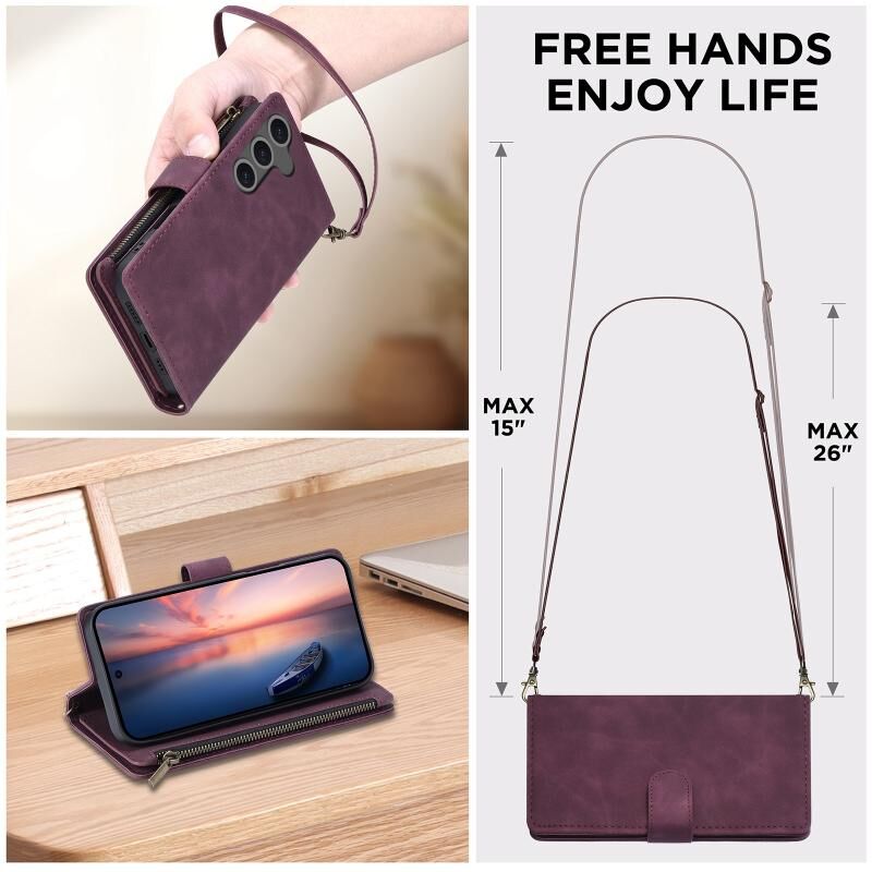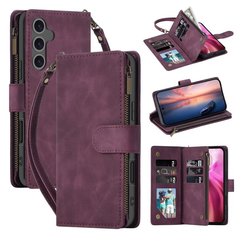 Για Samsung Galaxy S24 FE 5G Πολυλειτουργικό Crossbody φερμουάρ πορτοφόλι δερμάτινη θήκη τηλεφώνου (κόκκινο κρασί)
