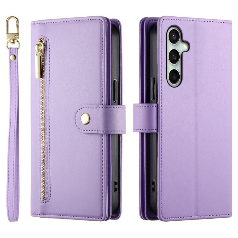 For Samsung Galaxy S24 FE 5G Nine Card-slot Zipper Wallet Bag Leather Phone Case(Purple)