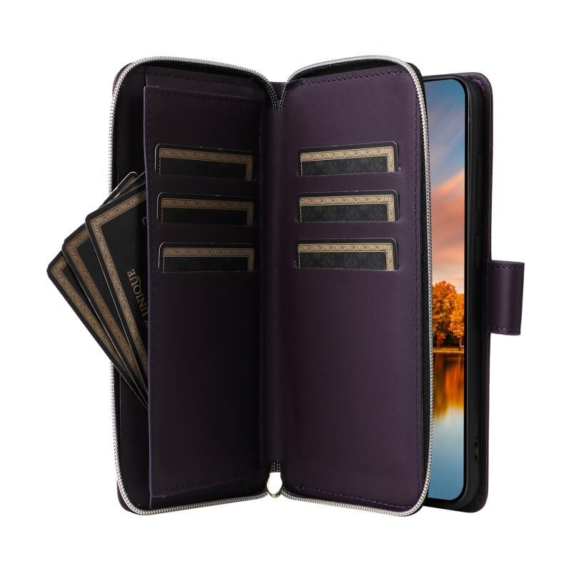 5. Πρακτική λειτουργία θήκης καρτών: Η υποδοχή κάρτας και η τσέπη πορτοφολιού με φερμουάρ και η θήκη μετρητών μπορούν να αποθηκεύσουν τις πιστωτικές σας κάρτες, τα μετρητά ή τα μικρά χαρτονομίσματα που χρειάζεστε καθημερινά.