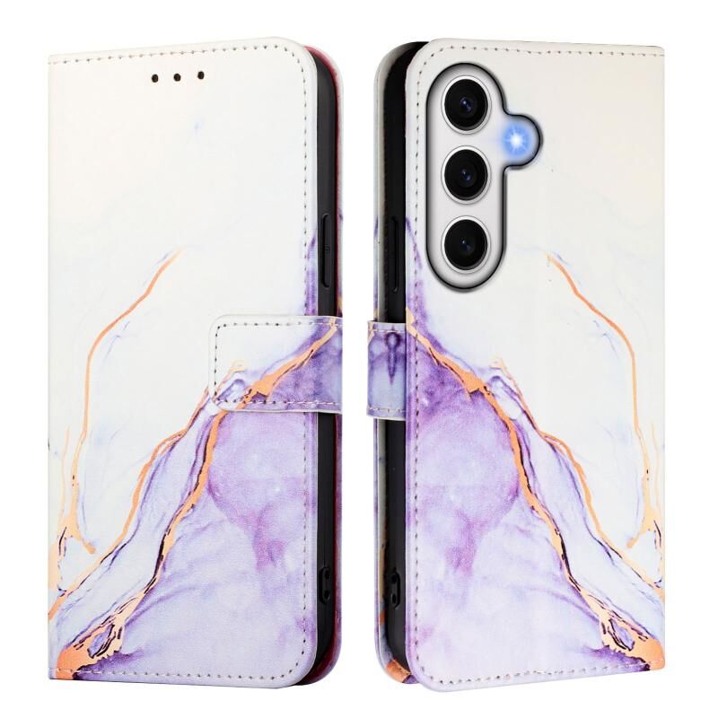 For Samsung Galaxy S24 FE 5G PT003 Marble Pattern Flip Leather Phone Case(White Purple)