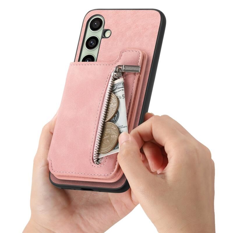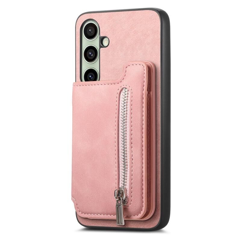 For Samsung Galaxy S24 FE 5G Retro MagSafe Zipper Wallet Card Bag Back Phone Case(Pink)