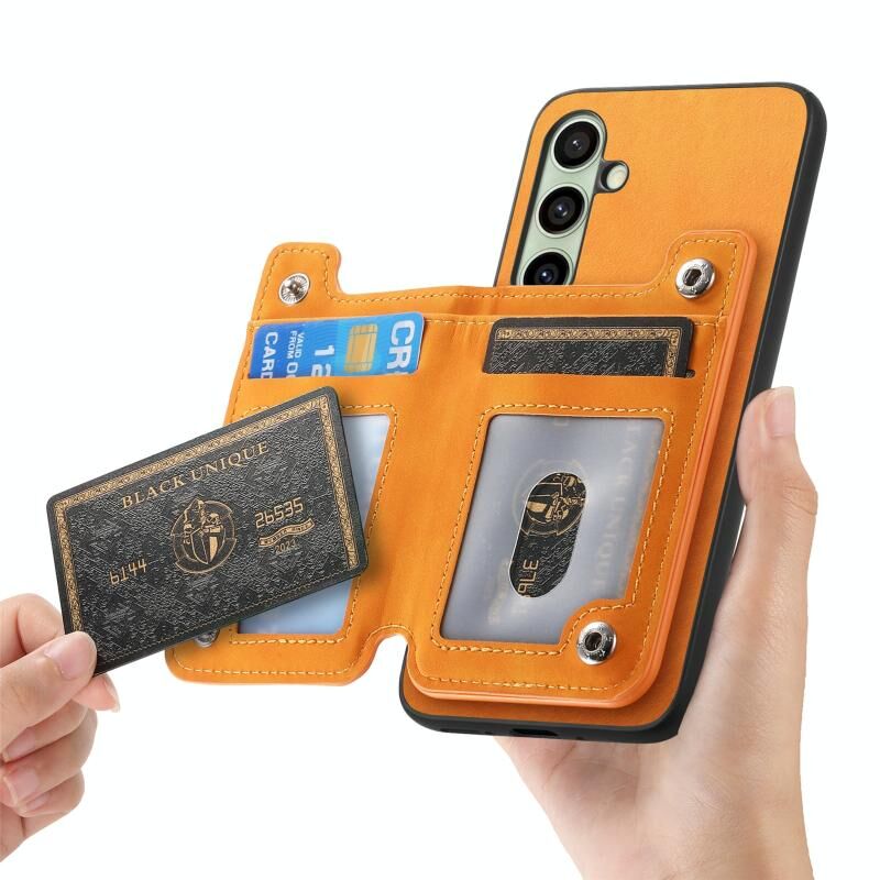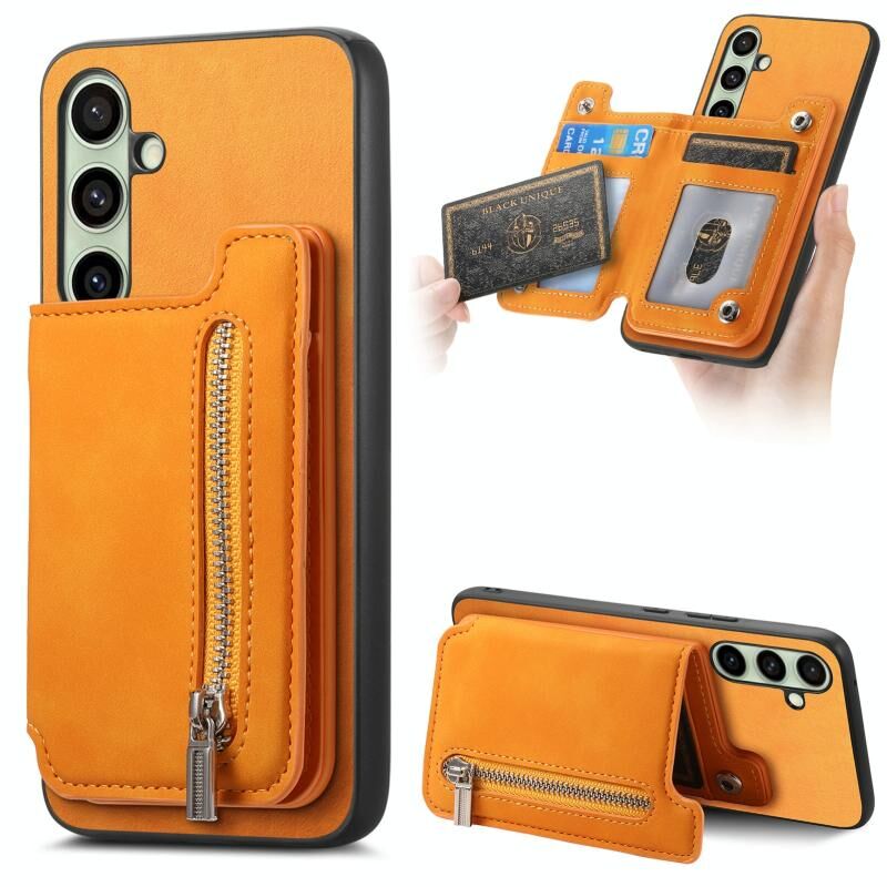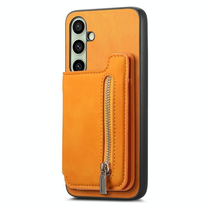 Θήκη κινητού Samsung Galaxy S24 FE 5G με φερμουάρ, τσέπη για κάρτες και μαγνητική σύνδεση τύπου MagSafe (Κίτρινο)
