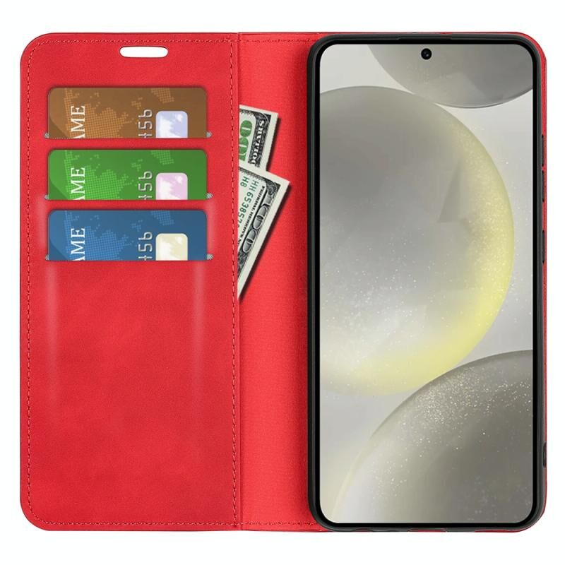 Για Samsung Galaxy S24 FE 5G Retro-skin Μαγνητική δερμάτινη θήκη τηλεφώνου αναρρόφησης (κόκκινο)