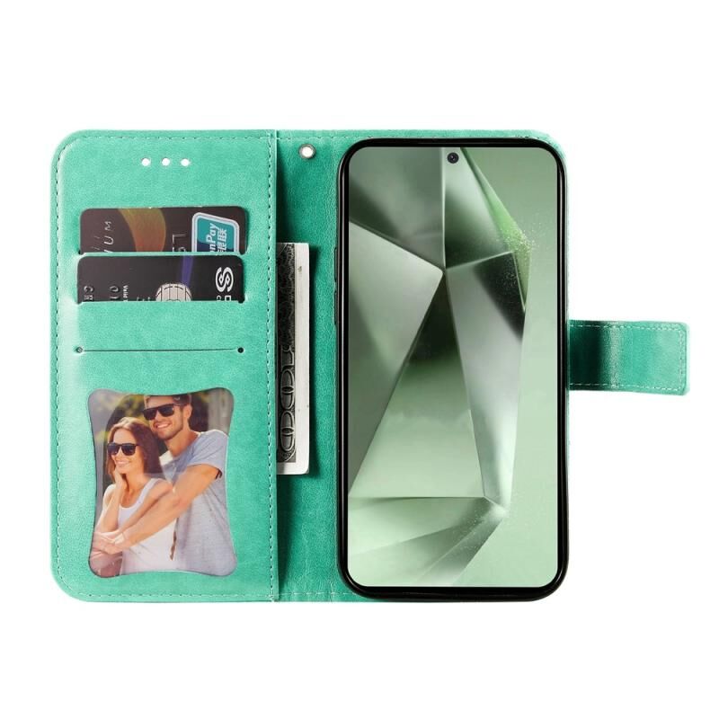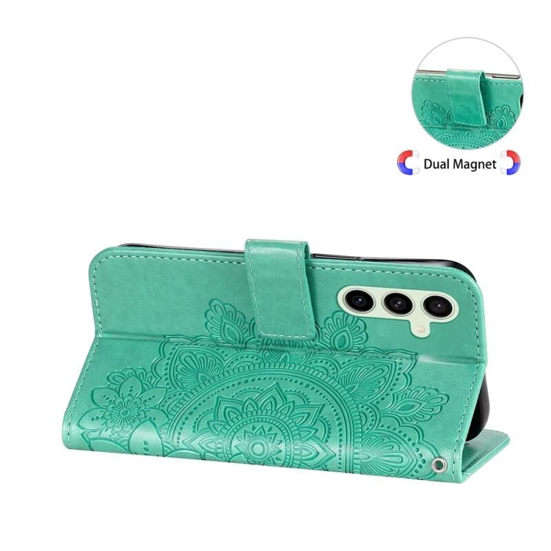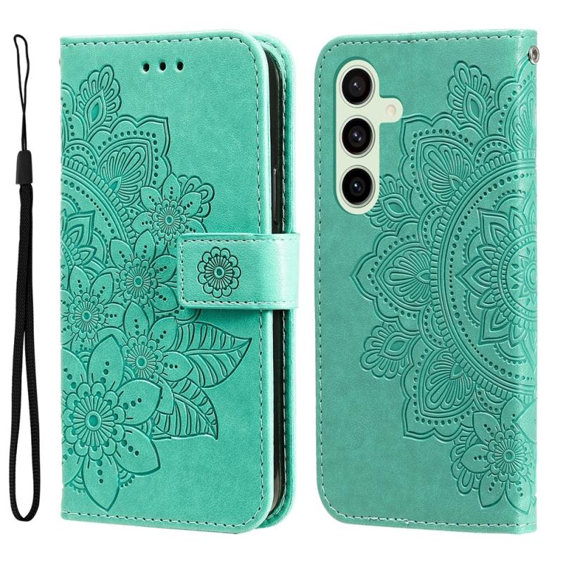 For Samsung Galaxy S24 FE 5G Seven-petal Flowers Embossing Leather Phone Case(Green)