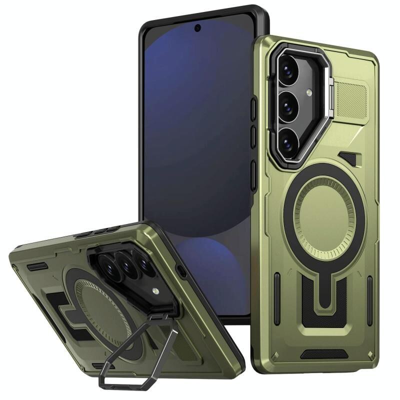 Θήκη κινητού τηλεφώνου Samsung Galaxy S24 FE 5G με μαγνητική υποστήριξη MagSafe, κούφιο πλαίσιο προστασίας (Χακί Πράσινο)