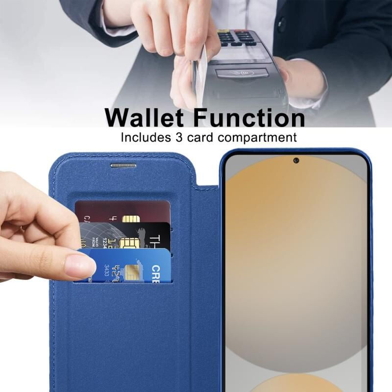 Θήκη τηλεφώνου δερμάτινη με μαγνητική υποστήριξη MagSafe, προστασία RFID και αντι-κλοπής για Samsung Galaxy S24 FE 5G (Σκούρο Μπλε)