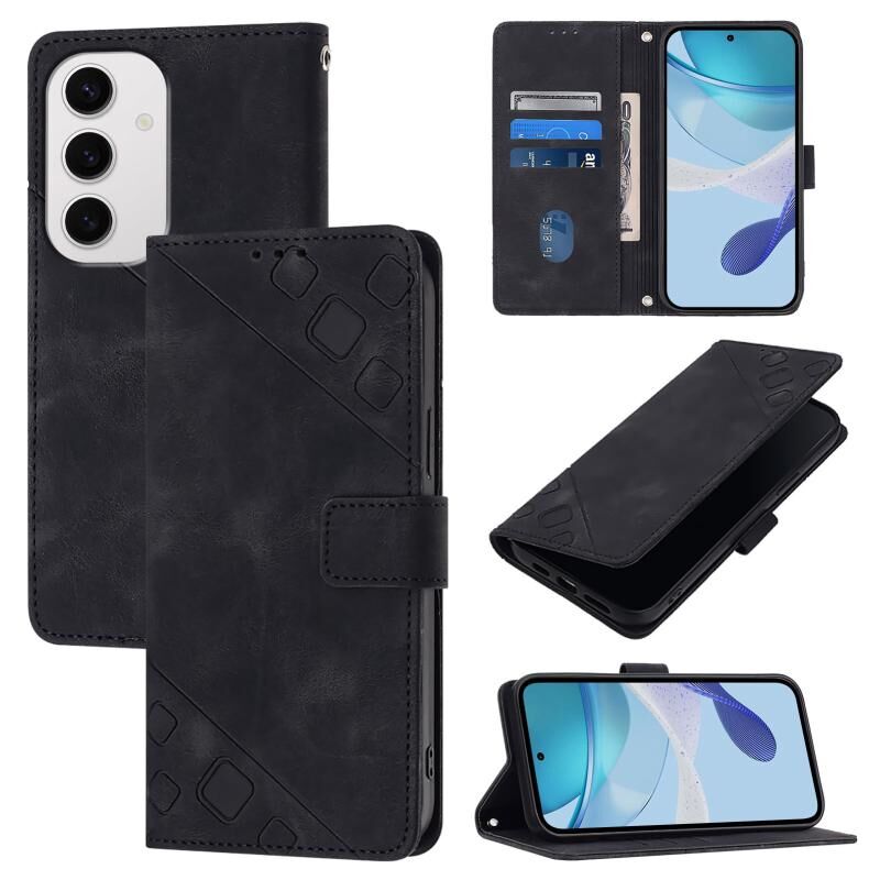 Για Samsung Galaxy S24 FE 5G Skin-feel ανάγλυφη δερμάτινη θήκη τηλεφώνου (Μαύρο)