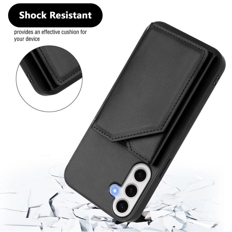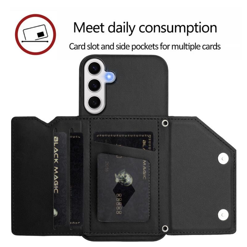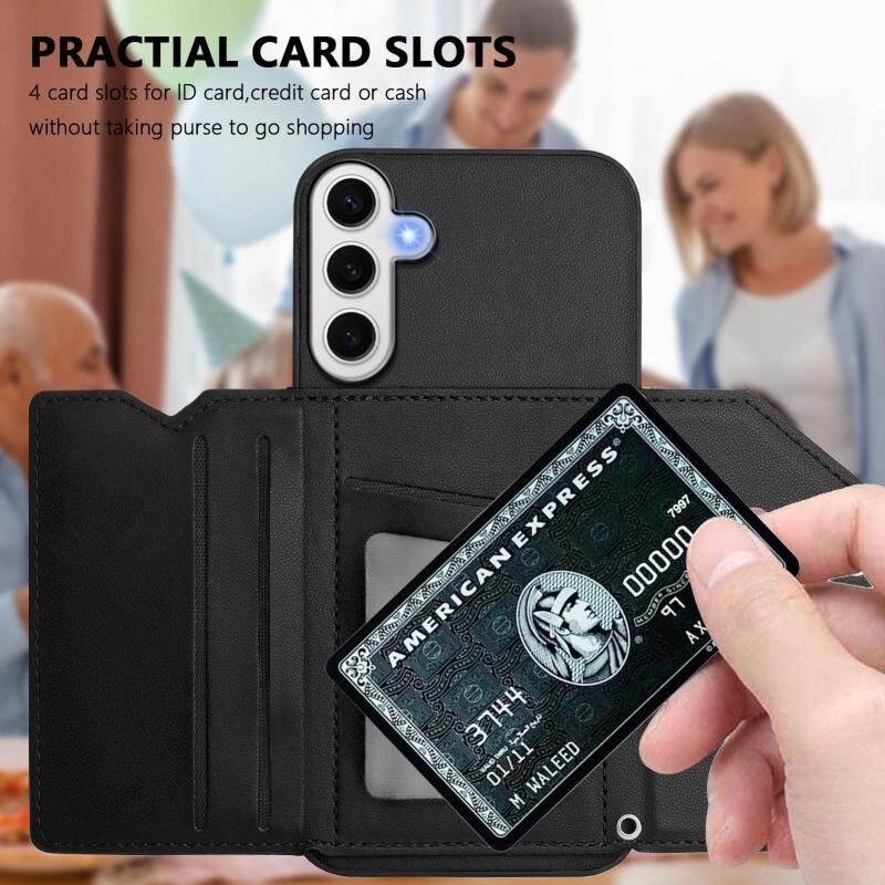 Για Samsung Galaxy S24 FE 5G δέρμα αίσθηση τέσσερις υποδοχές κάρτα τηλέφωνο υπόθεση με λουράκι καρπού (Μαύρο)