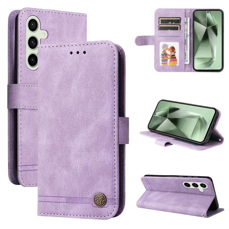 For Samsung Galaxy S24 FE 5G Skin Feel Life Tree Metal Button Leather Phone Case(Purple)