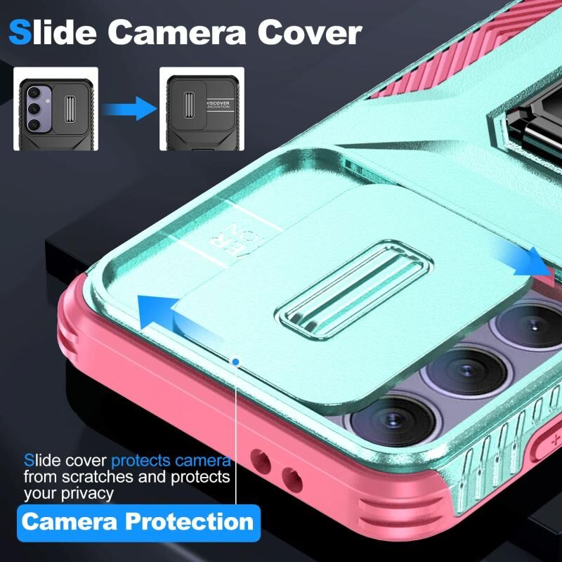 Για το Samsung Galaxy S24 FE 5G Συρόμενη θήκη τηλεφώνου με κάλυμμα κάμερας (γκρι πράσινο + ροζ)