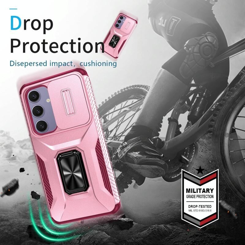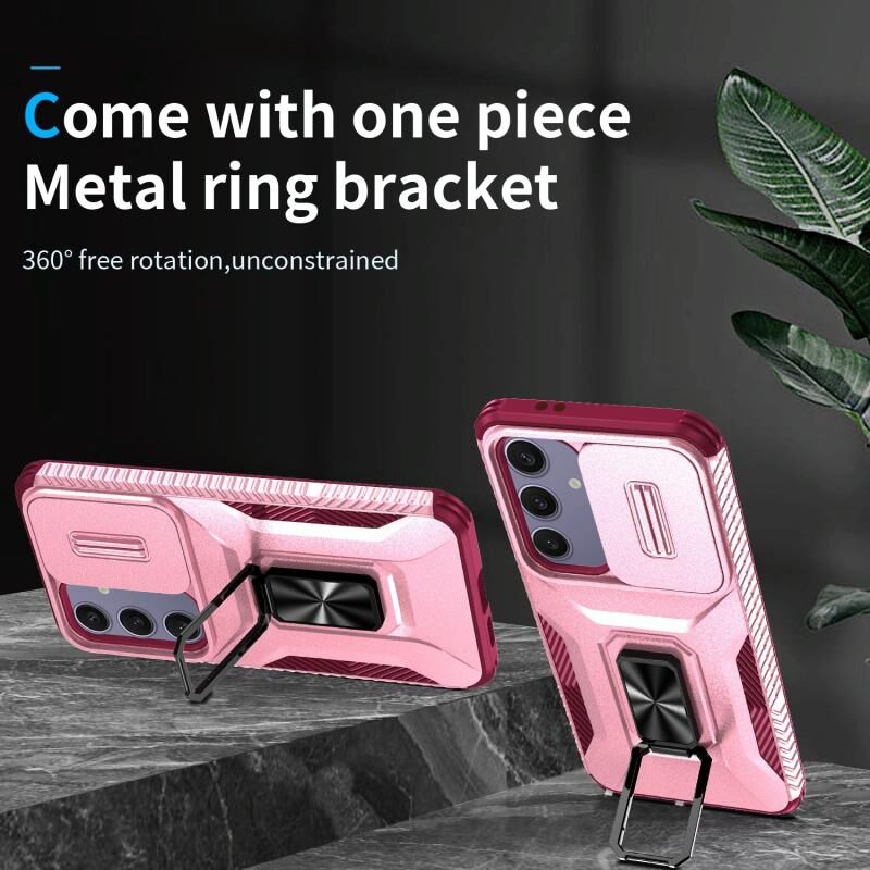 Για το Samsung Galaxy S24 FE 5G Συρόμενη θήκη τηλεφώνου με κάλυμμα κάμερας (ροζ + ροζ κόκκινο)
