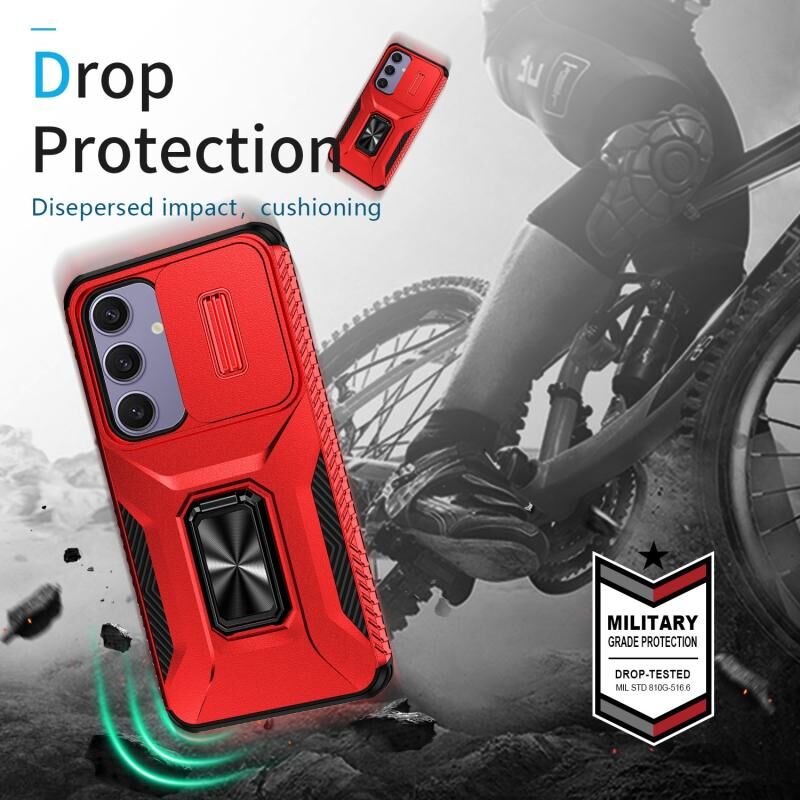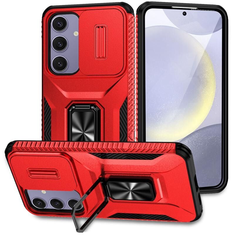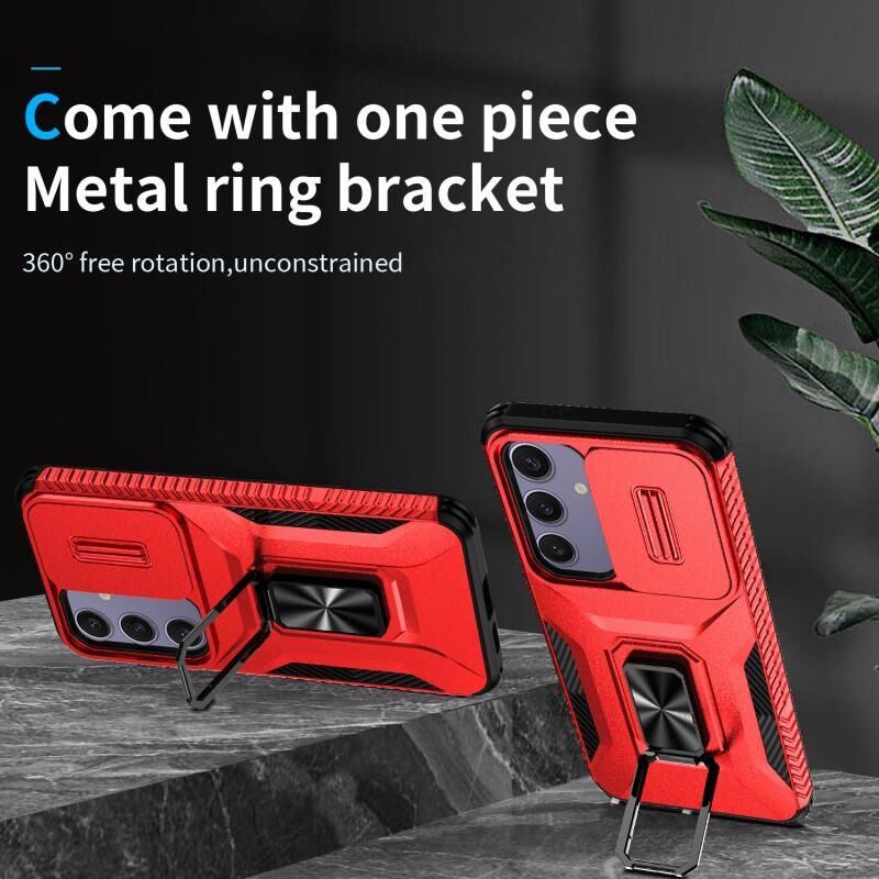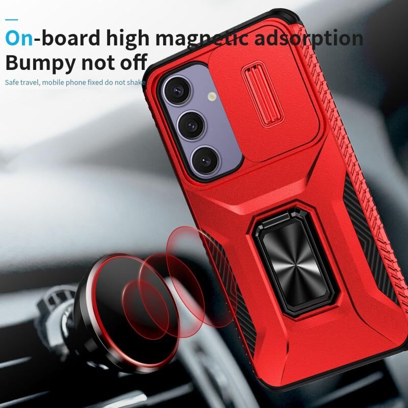 Για Samsung Galaxy S24 FE 5G Συρόμενη θήκη τηλεφώνου με κάλυμμα κάμερας (κόκκινο)