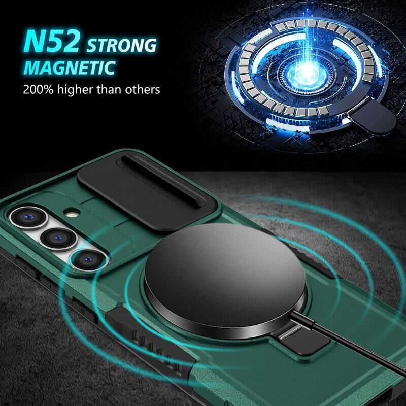Θήκη κινητού τηλεφώνου Samsung Galaxy S24 FE 5G με συρόμενο προστατευτικό κάμερας, υποστήριξη MagSafe, υβριδική κατασκευή TPU και PC (Βασιλικό Μπλε)