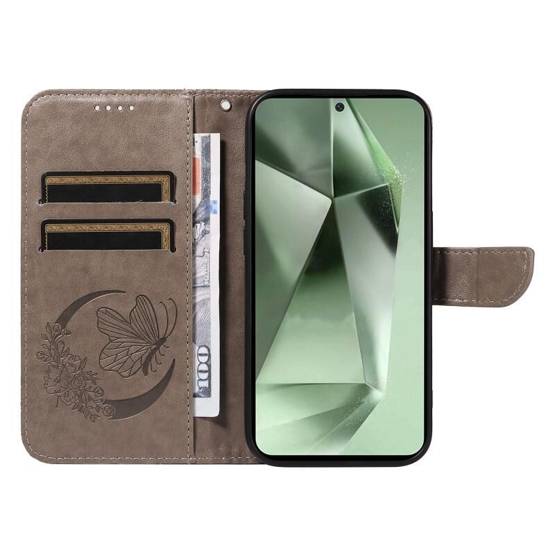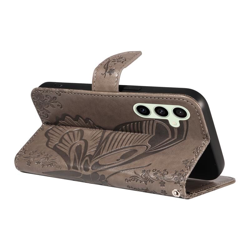 For Samsung Galaxy S24 FE 5G Swallowtail Butterfly Embossed Leather Phone Case(Grey)