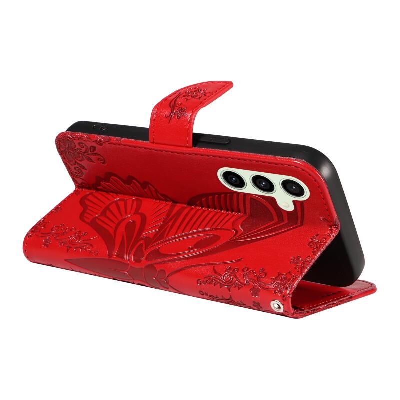 For Samsung Galaxy S24 FE 5G Swallowtail Butterfly Embossed Leather Phone Case(Red)