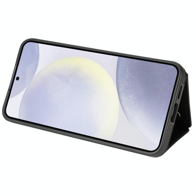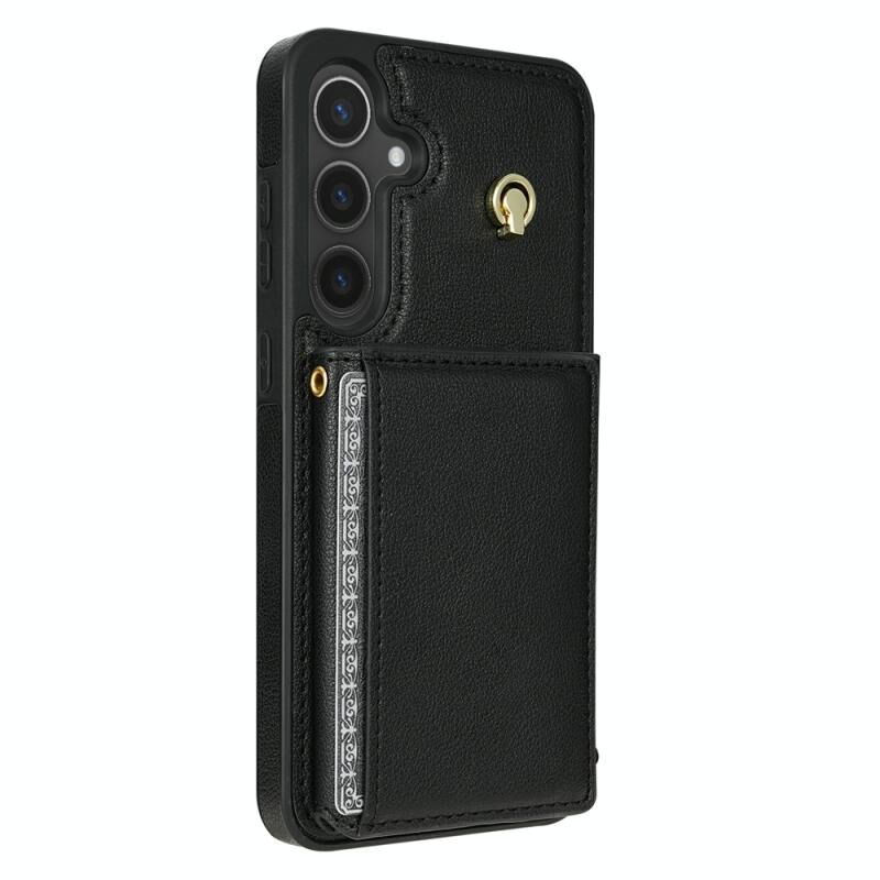Για Samsung Galaxy S24 FE 5G Τρεις φορές κάρτα τσάντα θήκη τηλεφώνου με μακρύ κορδόνι (Μαύρο)