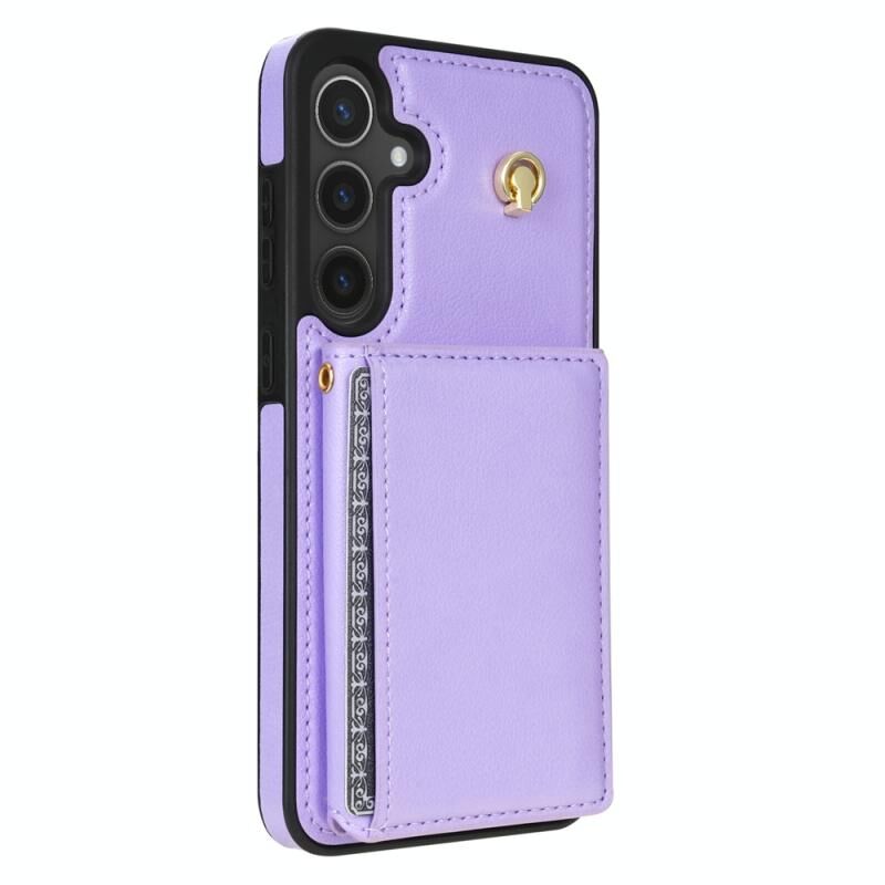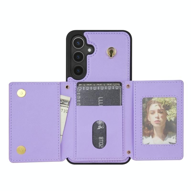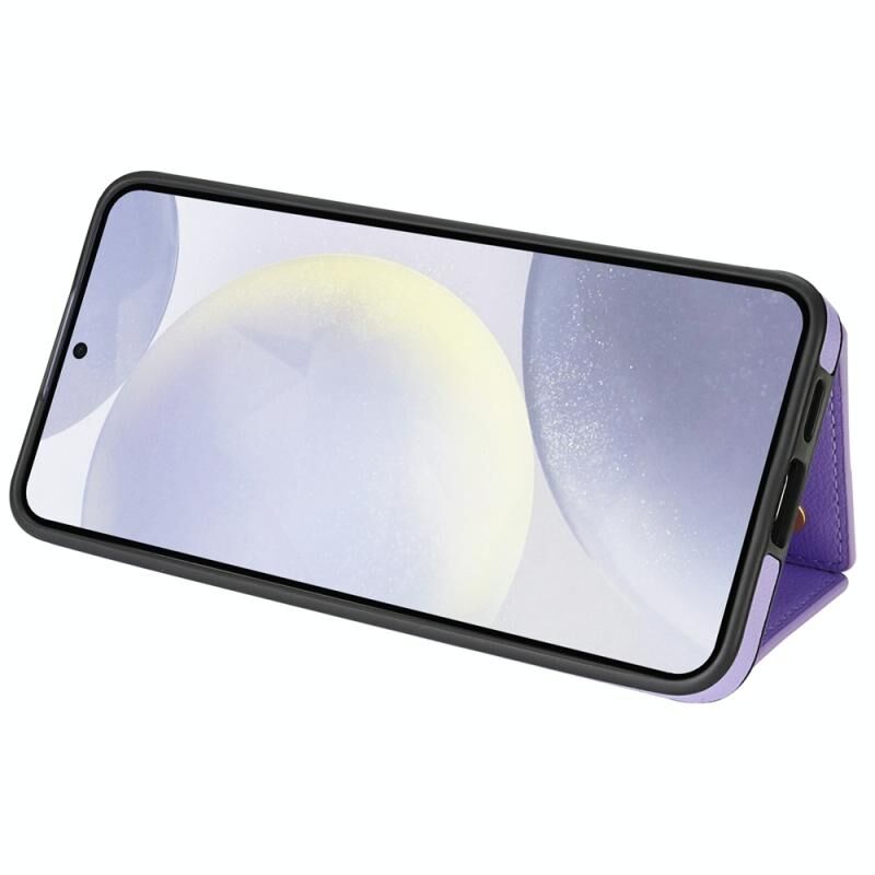 Για Samsung Galaxy S24 FE 5G Τρεις φορές κάρτα τσάντα υπόθεση τηλεφώνου με μακρύ κορδόνι (μωβ)