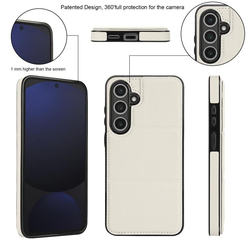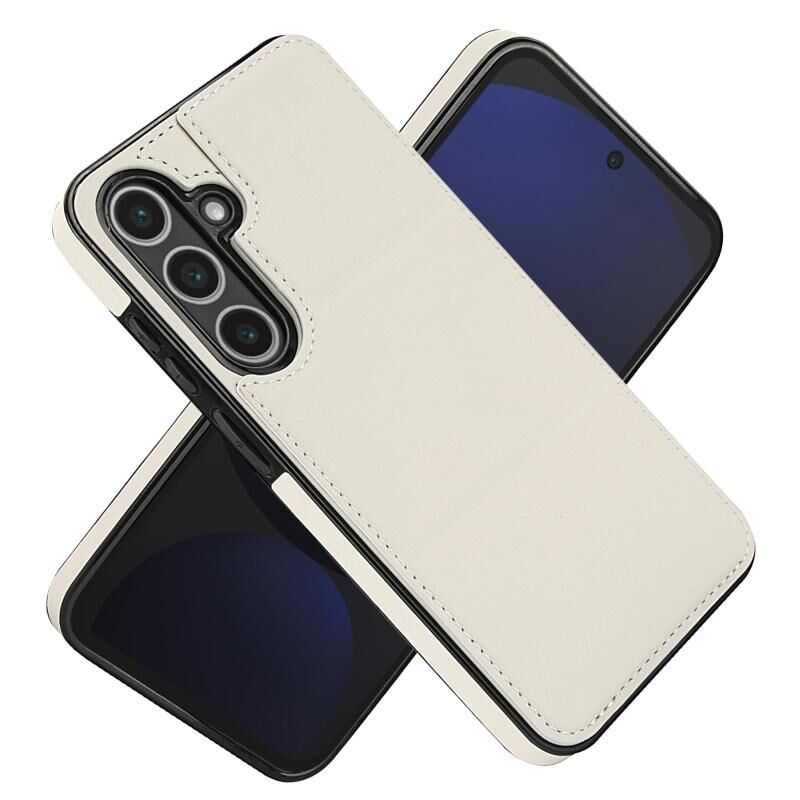 For Samsung Galaxy S24 FE 5G Tri-fold Holder Leather Phone Case with Card Slot(White)