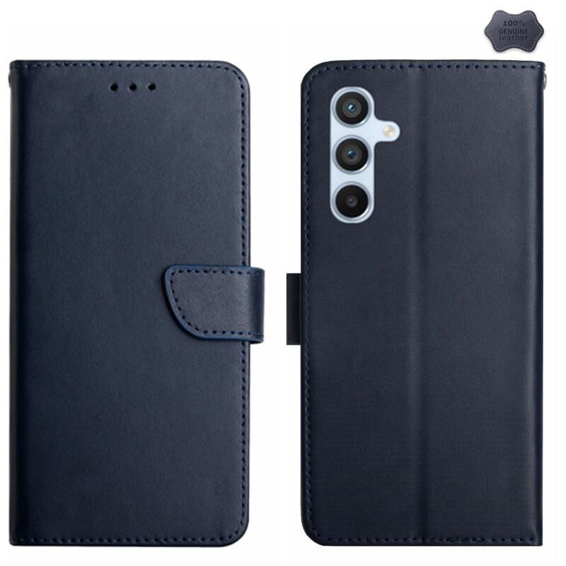 For Samsung Galaxy S24 FE HT02 Genuine Leather Fingerprint-proof Flip Phone Case(Blue)