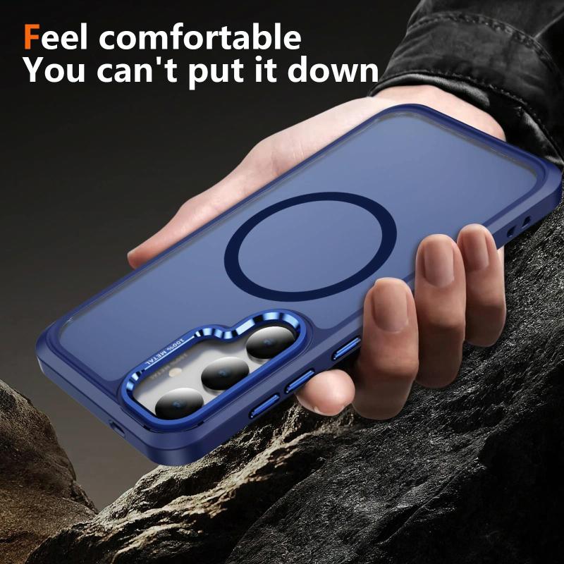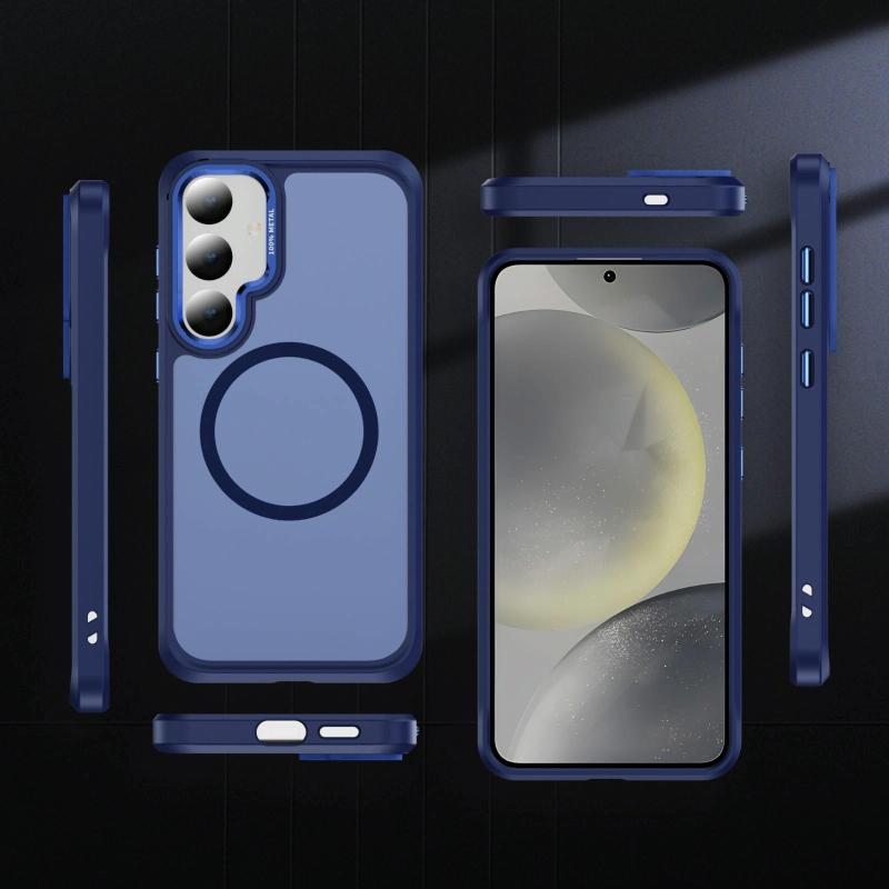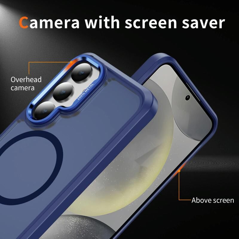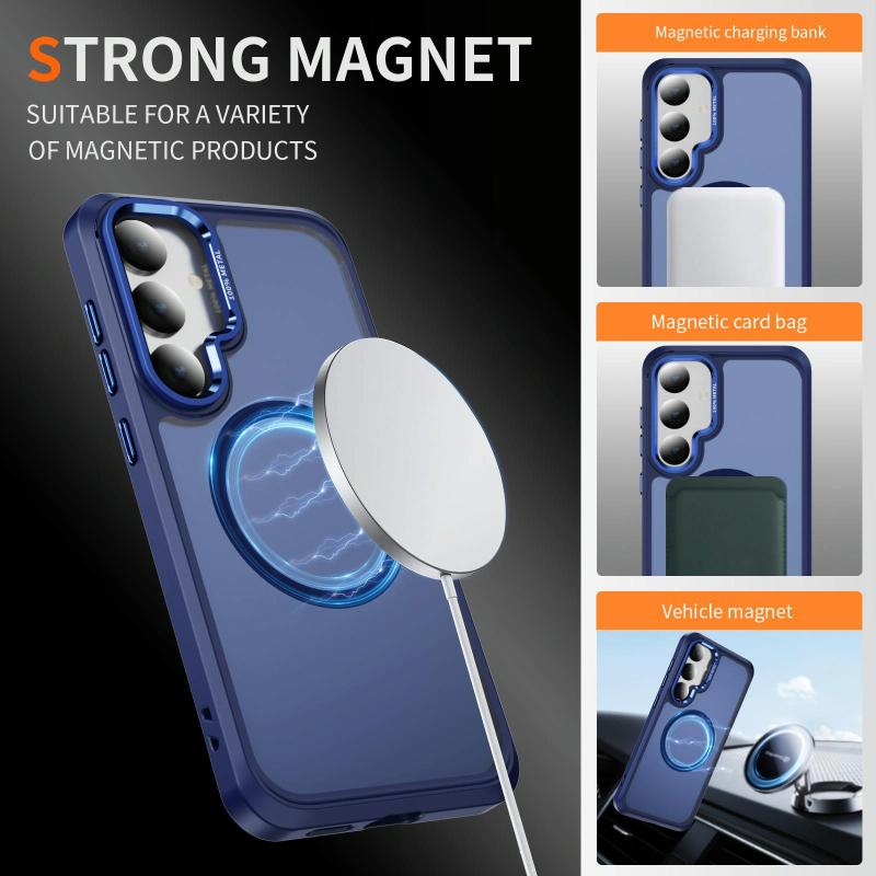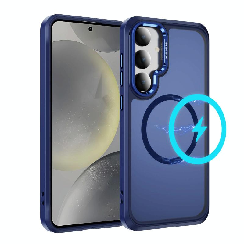 For Samsung Galaxy S24 / S25 5G Hardware Lens Protection MagSafe Magnetic PC Hybrid TPU Phone Case(Blue)