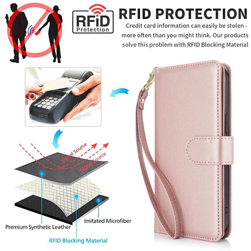 5. Λειτουργία πολλαπλών καρτών και πορτοφολιού: Θήκη για κάρτες και τσέπη πορτοφολιού με φερμουάρ και θήκη για μετρητά, μπορούν να αποθηκεύσουν τις πιστωτικές σας κάρτες, μετρητά ή μικρά χαρτονομίσματα που χρειάζεστε καθημερινά.
