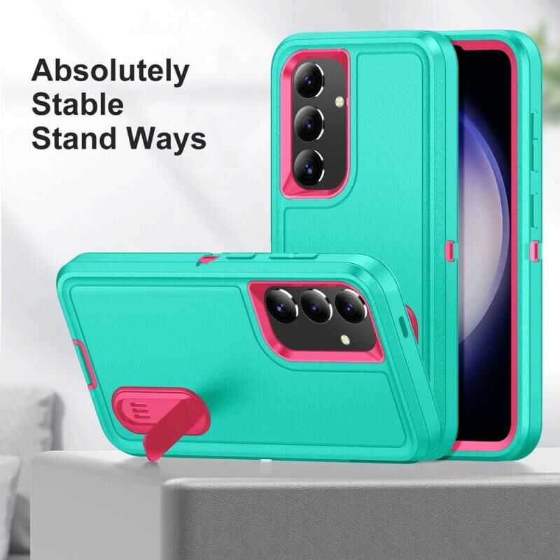 Για Samsung Galaxy S24+ / S25+ 5G Rugged PC Hybrid σιλικόνης τηλέφωνο υπόθεση με θήκη (ανοιχτό πράσινο + ροζ κόκκινο)