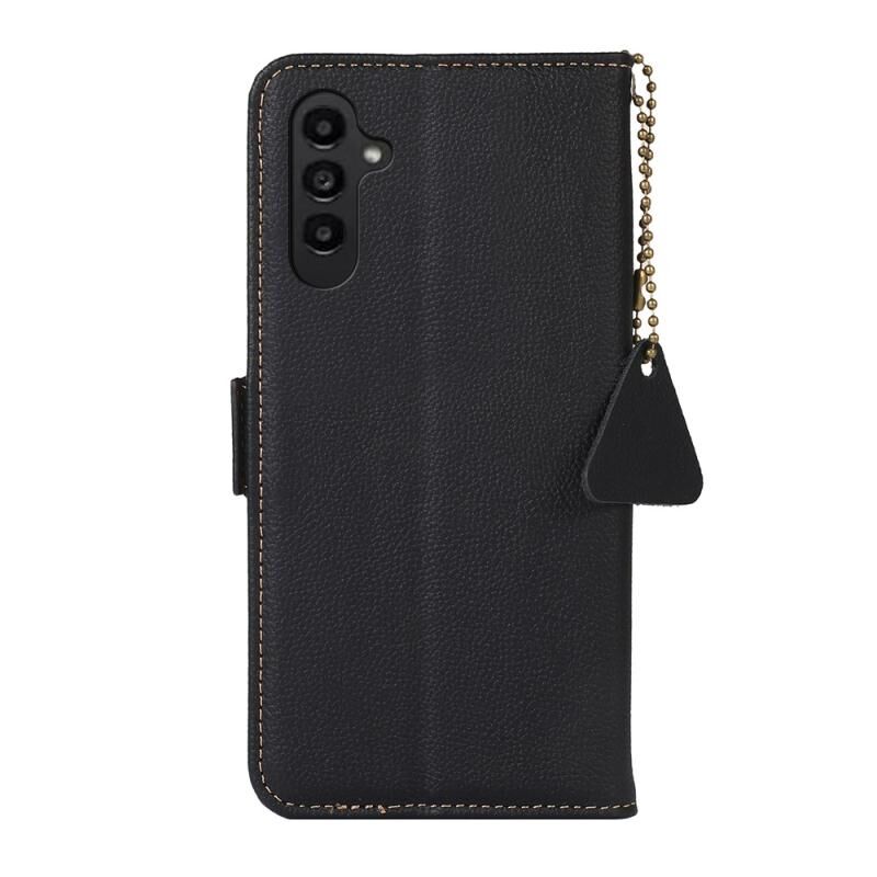 Θήκη τηλεφώνου Samsung Galaxy S24 με πλευρικό μαγνητισμό, γνήσιο δέρμα TJ, με προστασία RFID (Μαύρο)