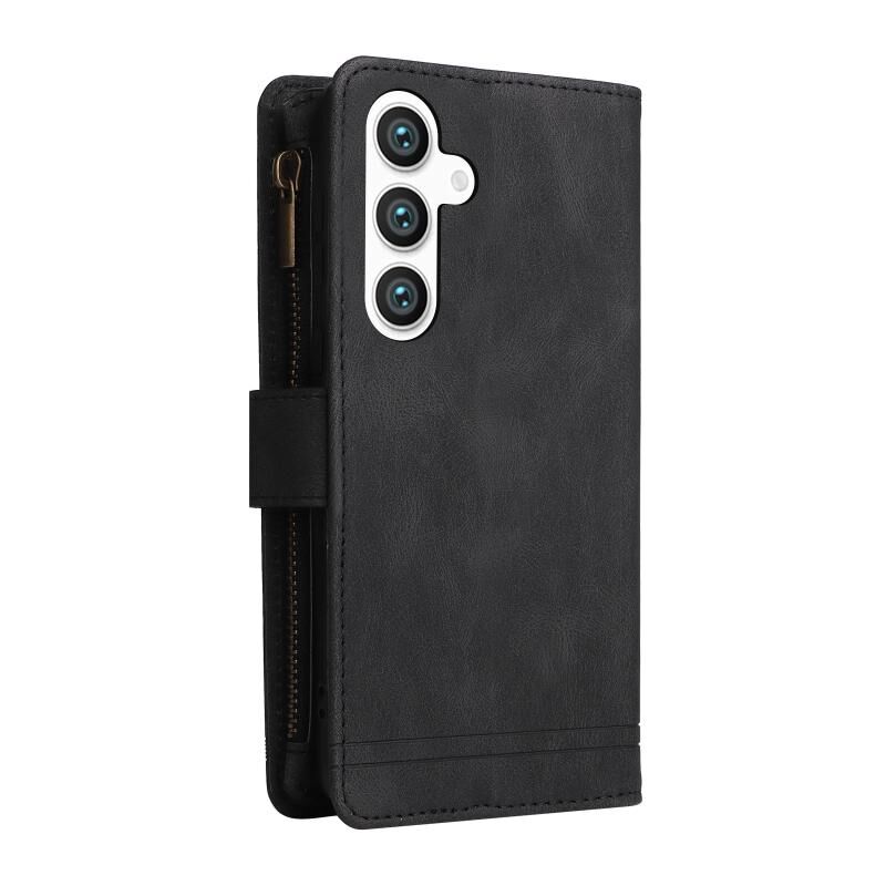 Για το Samsung Galaxy S24 δέρμα αίσθηση Multi-Card πορτοφόλι φερμουάρ δερμάτινη θήκη τηλεφώνου (Μαύρο)
