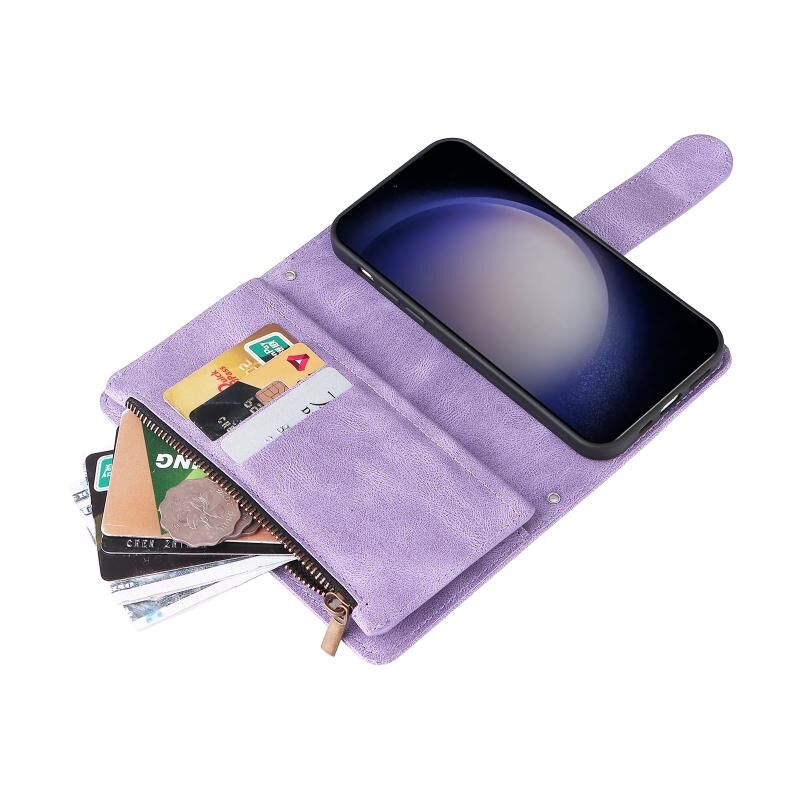 Για το Samsung Galaxy S24 δέρμα αίσθηση Multi-Card πορτοφόλι φερμουάρ δερμάτινη θήκη τηλεφώνου (μωβ)