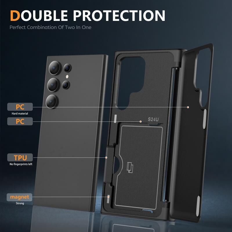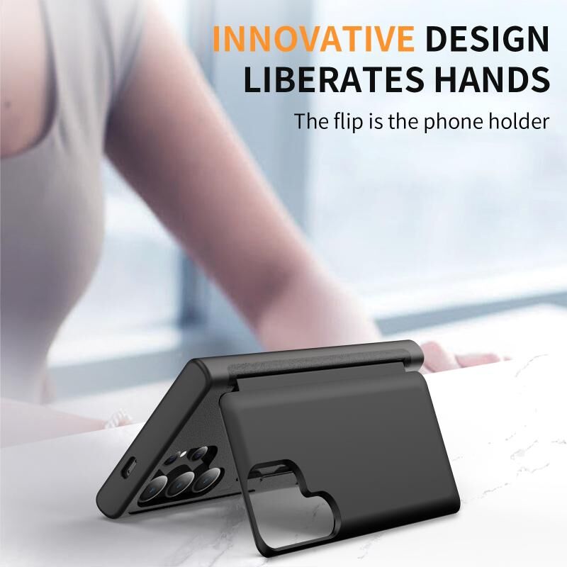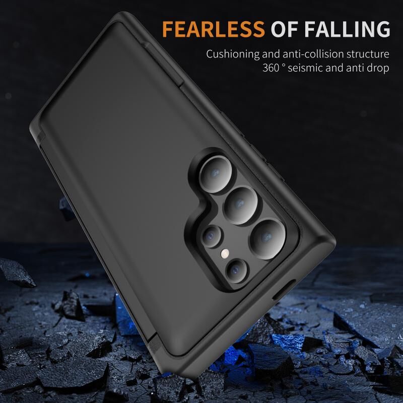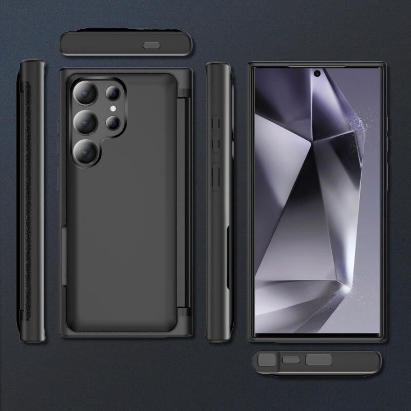 Για Samsung Galaxy S24 Ultra 5G 3 σε 1 Flip θήκη τηλεφώνου κάτοχος (Μαύρο)