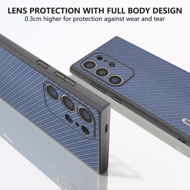 For Samsung Galaxy S24 Ultra 5G ABEEL Carbon Fiber Texture Protective Phone Case(Light Blue)