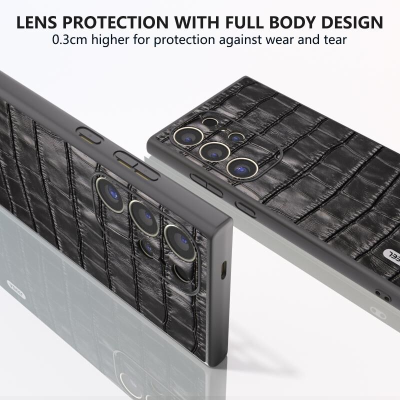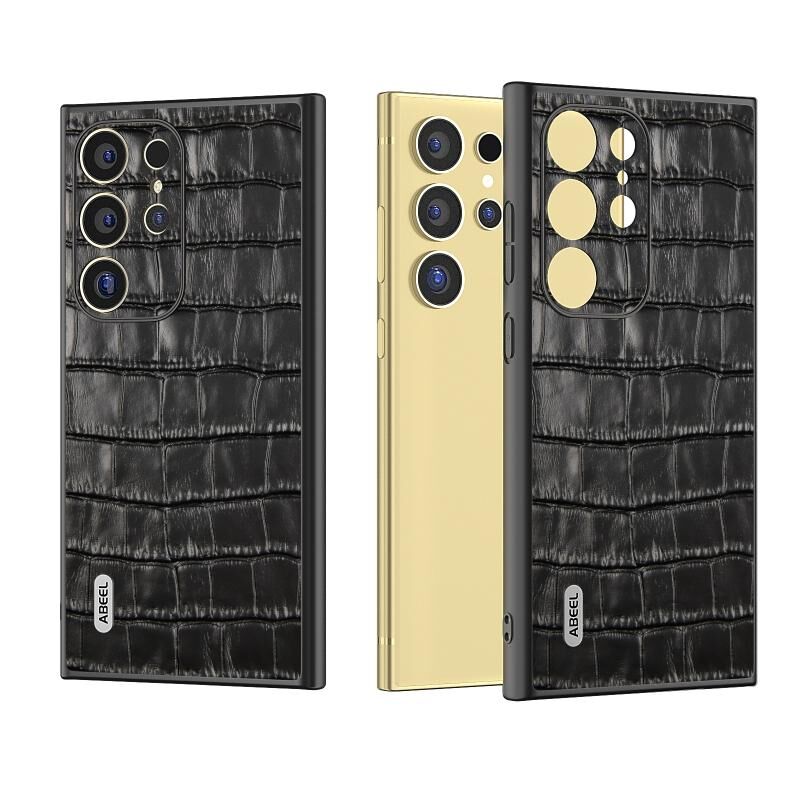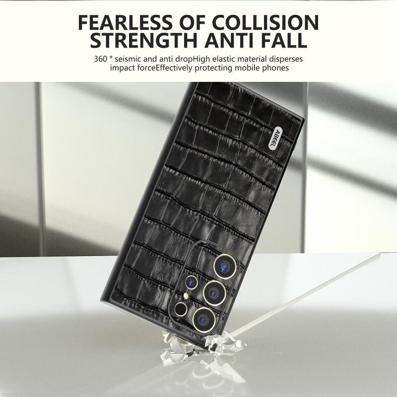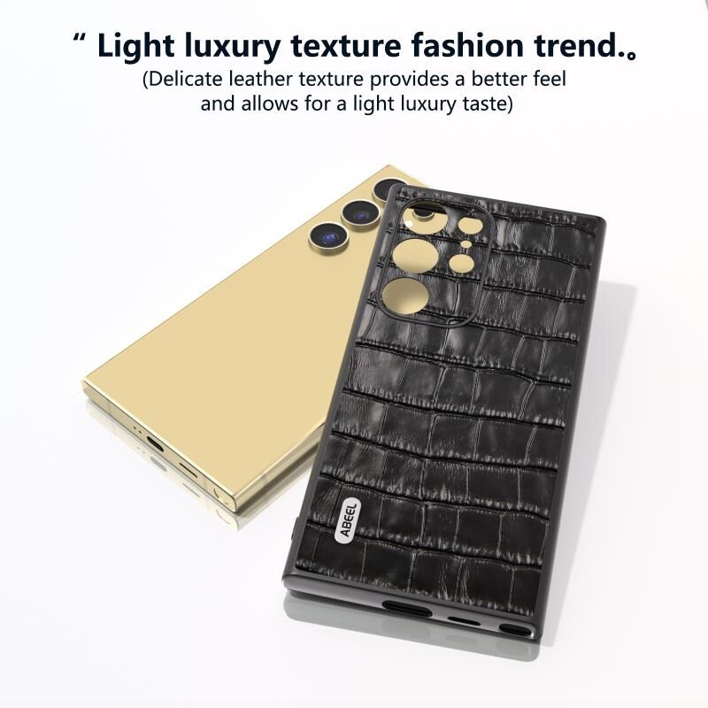 Θήκη τηλεφώνου από γνήσιο δέρμα με υφή κροκόδειλου για Samsung Galaxy S24 Ultra 5G ABEEL (Καφέ)