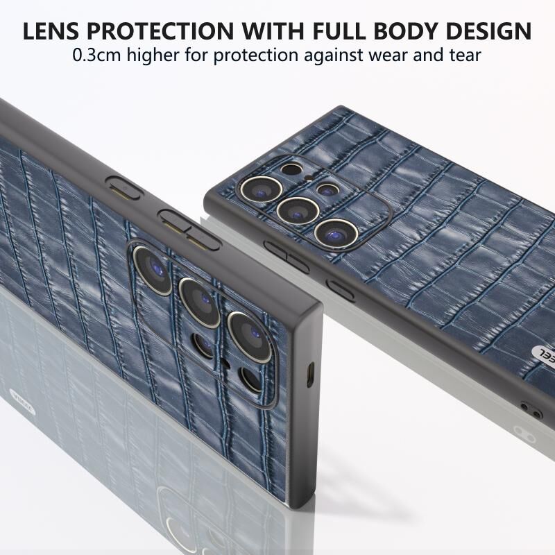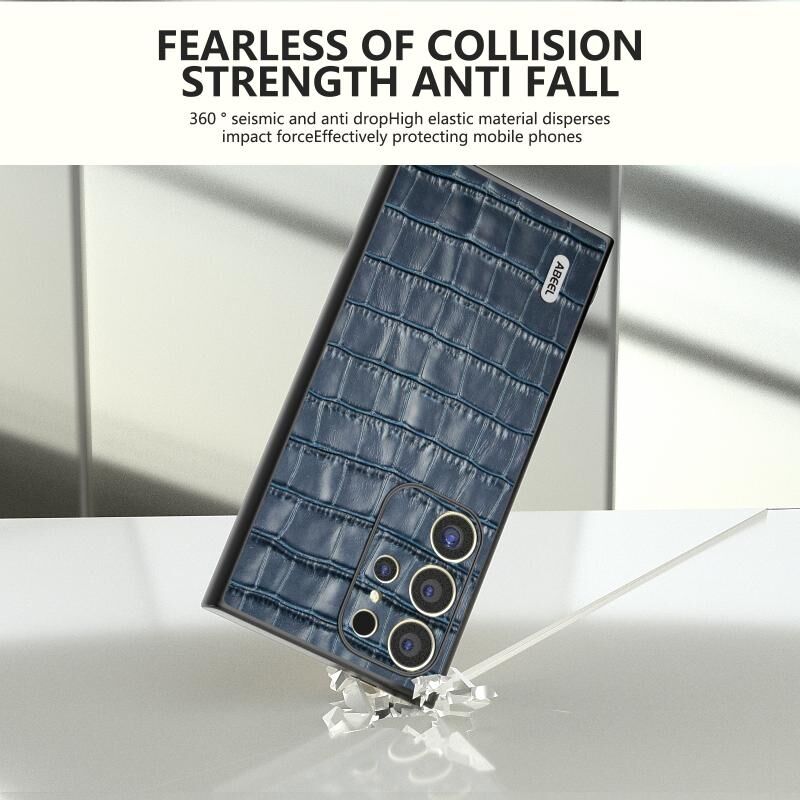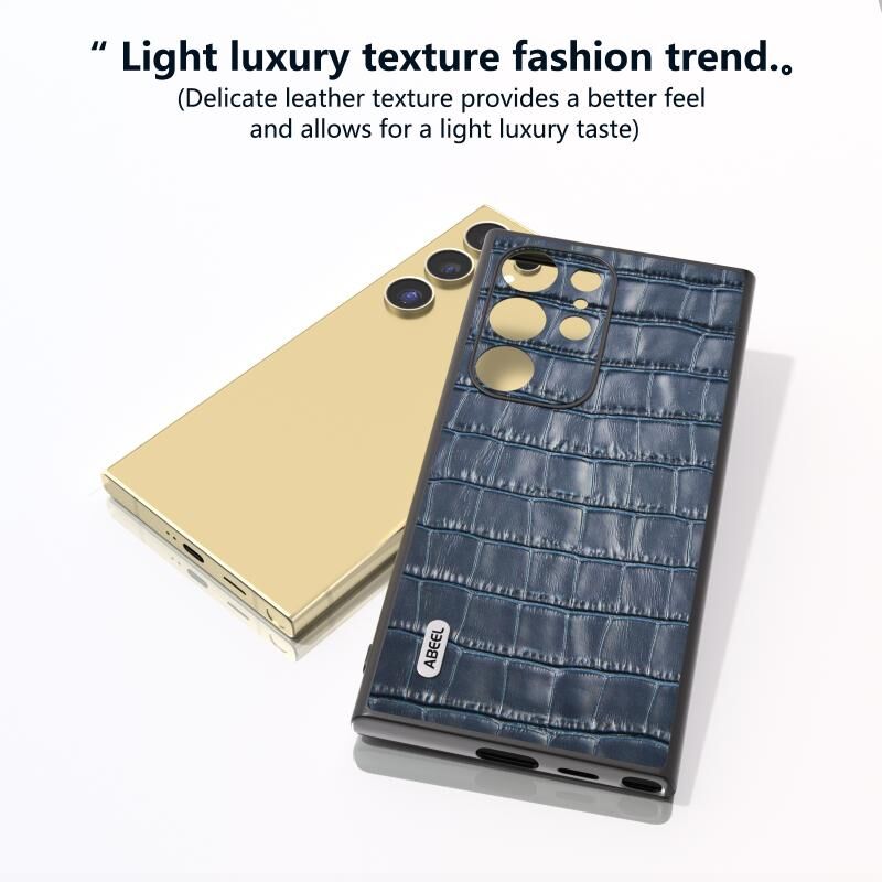 Θήκη τηλεφώνου από γνήσιο δέρμα με υφή κροκόδειλου για Samsung Galaxy S24 Ultra 5G ABEEL (Καφέ)