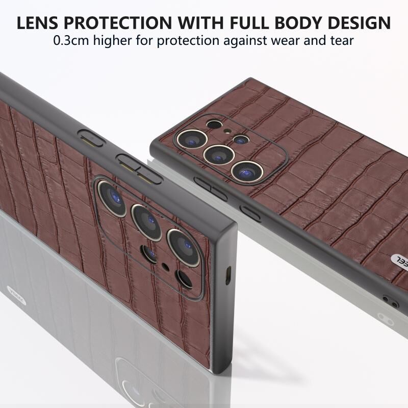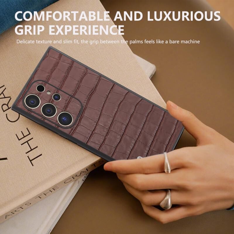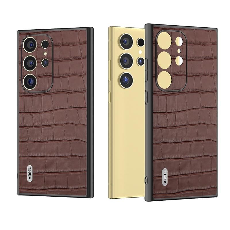 Θήκη τηλεφώνου από γνήσιο δέρμα με υφή κροκόδειλου για Samsung Galaxy S24 Ultra 5G ABEEL (Καφέ)