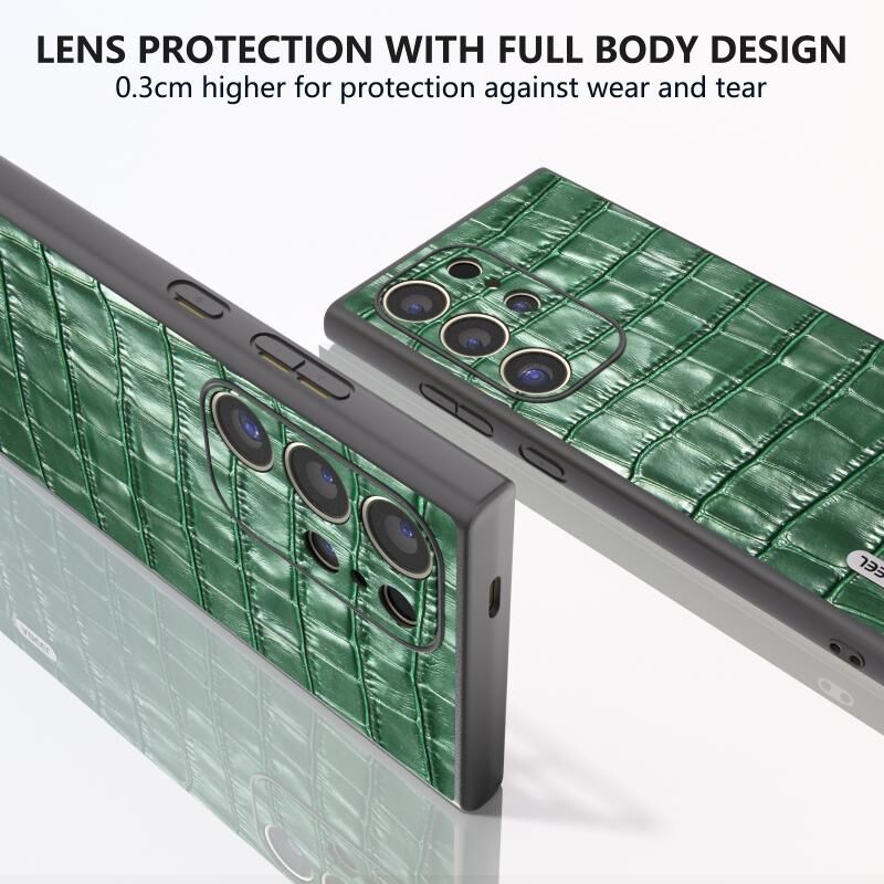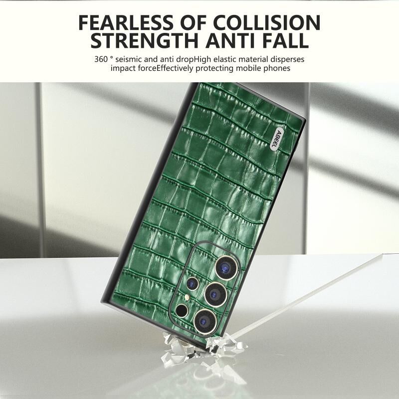 Θήκη τηλεφώνου από γνήσιο δέρμα με υφή κροκόδειλου για Samsung Galaxy S24 Ultra 5G ABEEL (Καφέ)