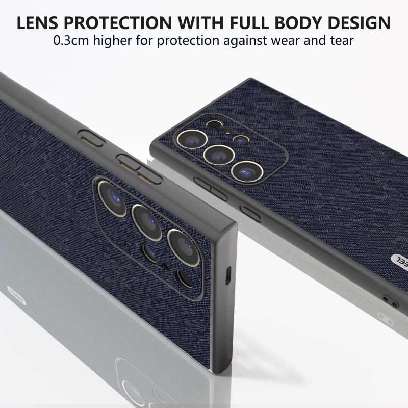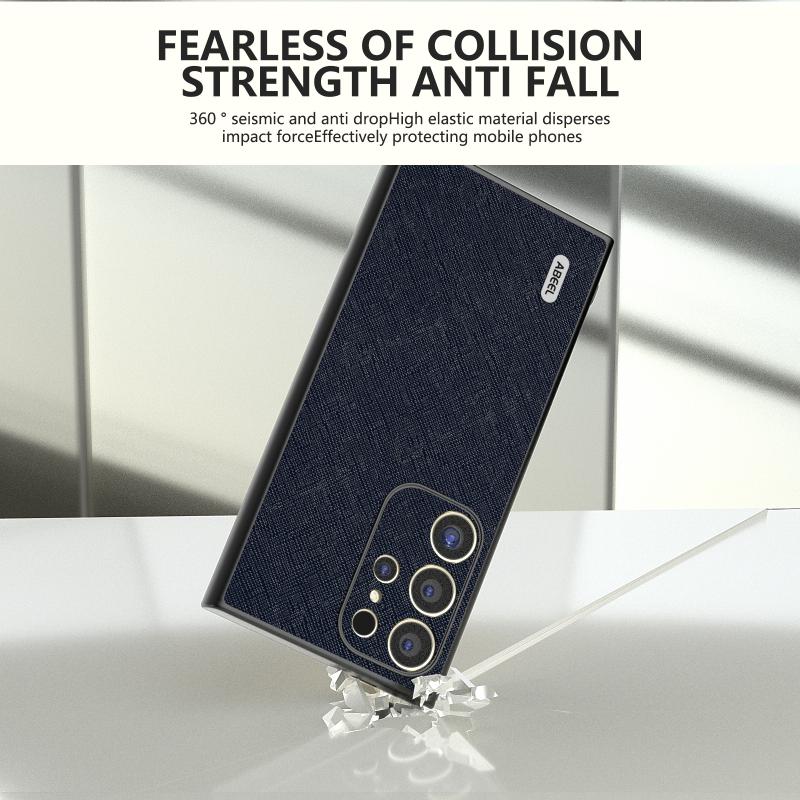 For Samsung Galaxy S24 Ultra 5G ABEEL Cross Texture Genuine Leather Phone Case(Blue)