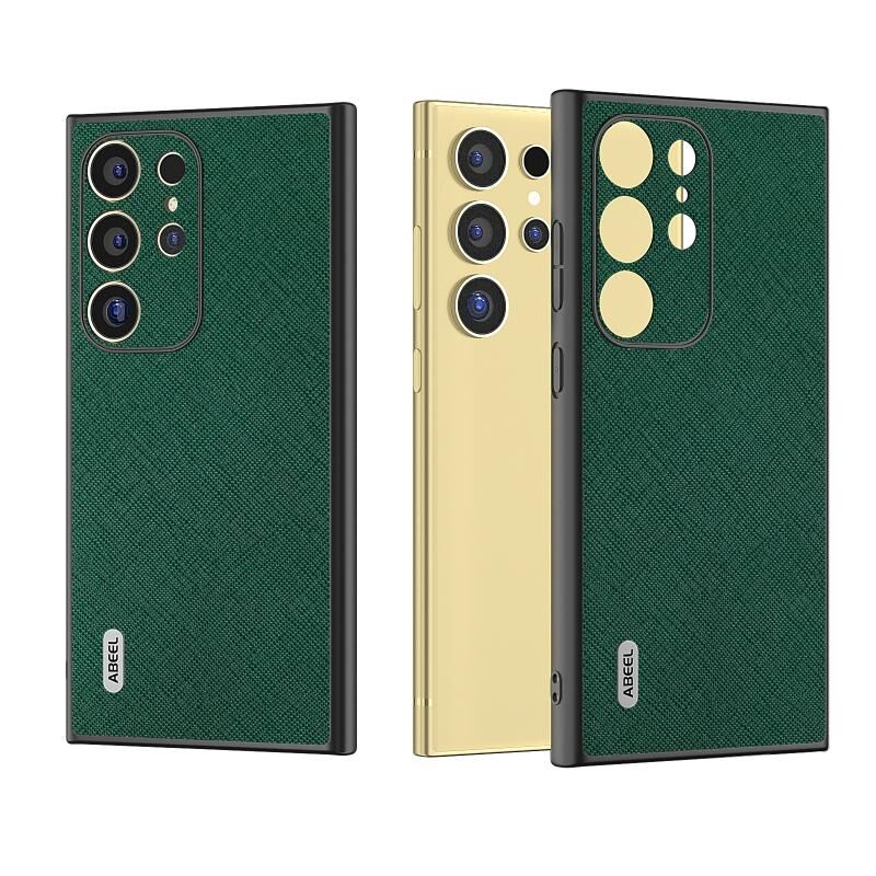 Θήκη τηλεφώνου από γνήσιο δέρμα με ανάγλυφη υφή ABEEL για Samsung Galaxy S24 Ultra 5G (πράσινο)