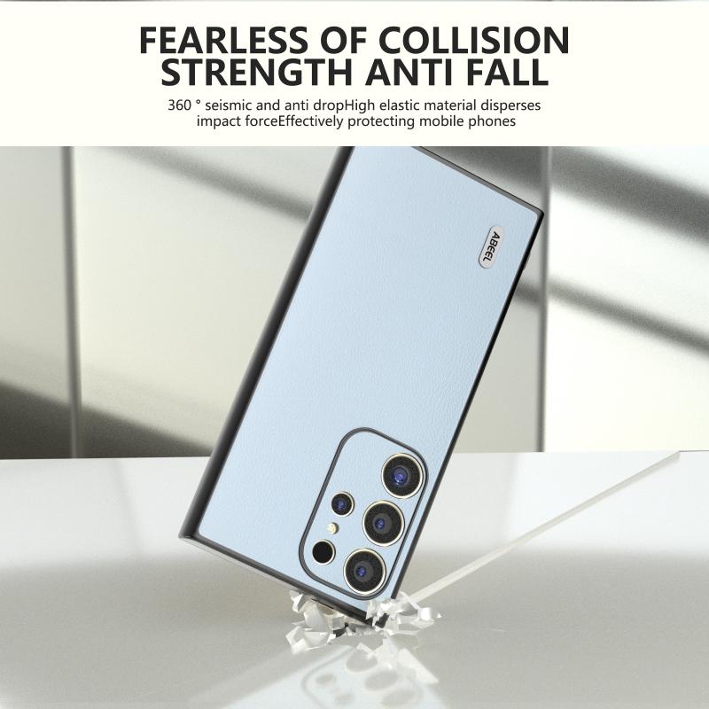 Θήκη κινητού τηλεφώνου Samsung Galaxy S24 Ultra 5G ABEEL από οικολογικό δέρμα, αντικραδασμική, από PU (Μπλε)