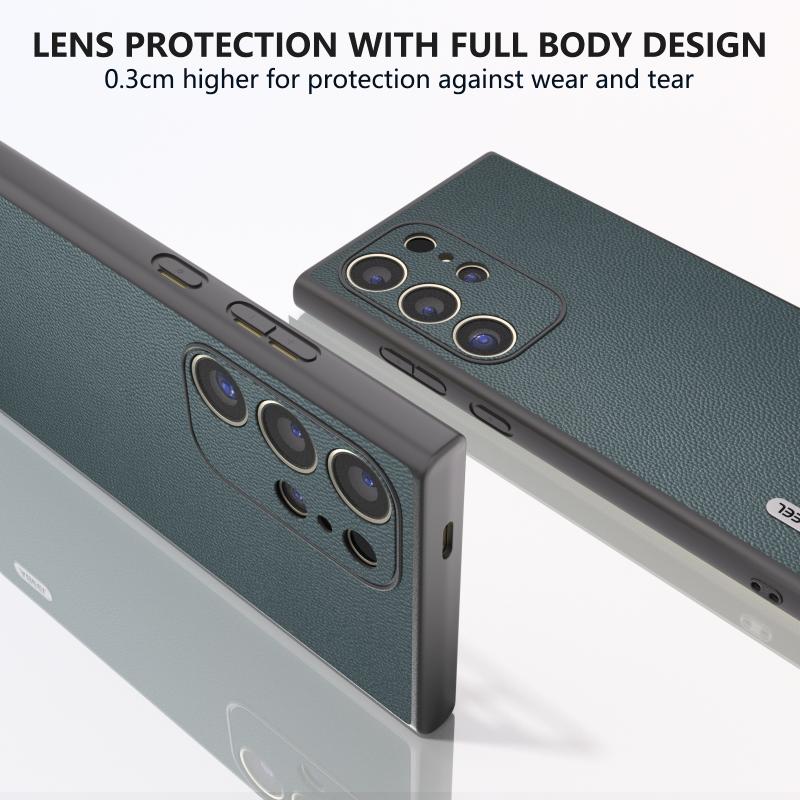 Θήκη τηλεφώνου από γνήσιο δέρμα ABEEL για Samsung Galaxy S24 Ultra 5G, κομψή σε μαύρο χρώμα με λευκή επένδυση. (πράσινο)